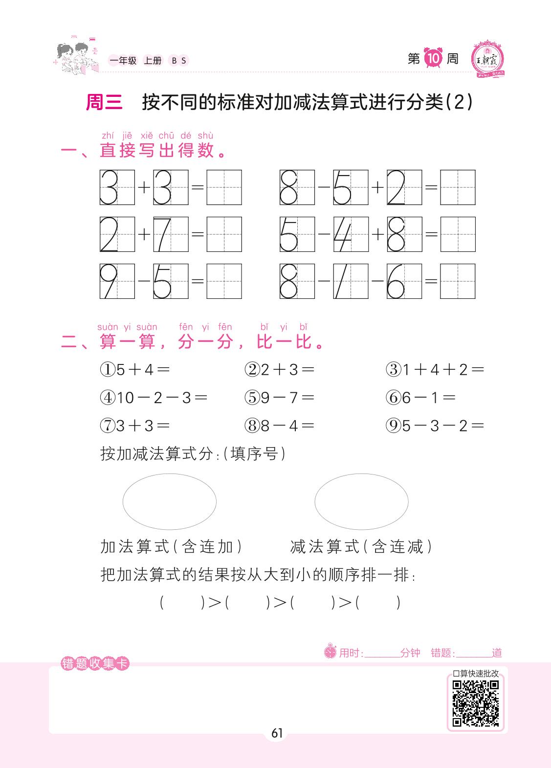 2022上册一年级数学北师版 第10周 周三