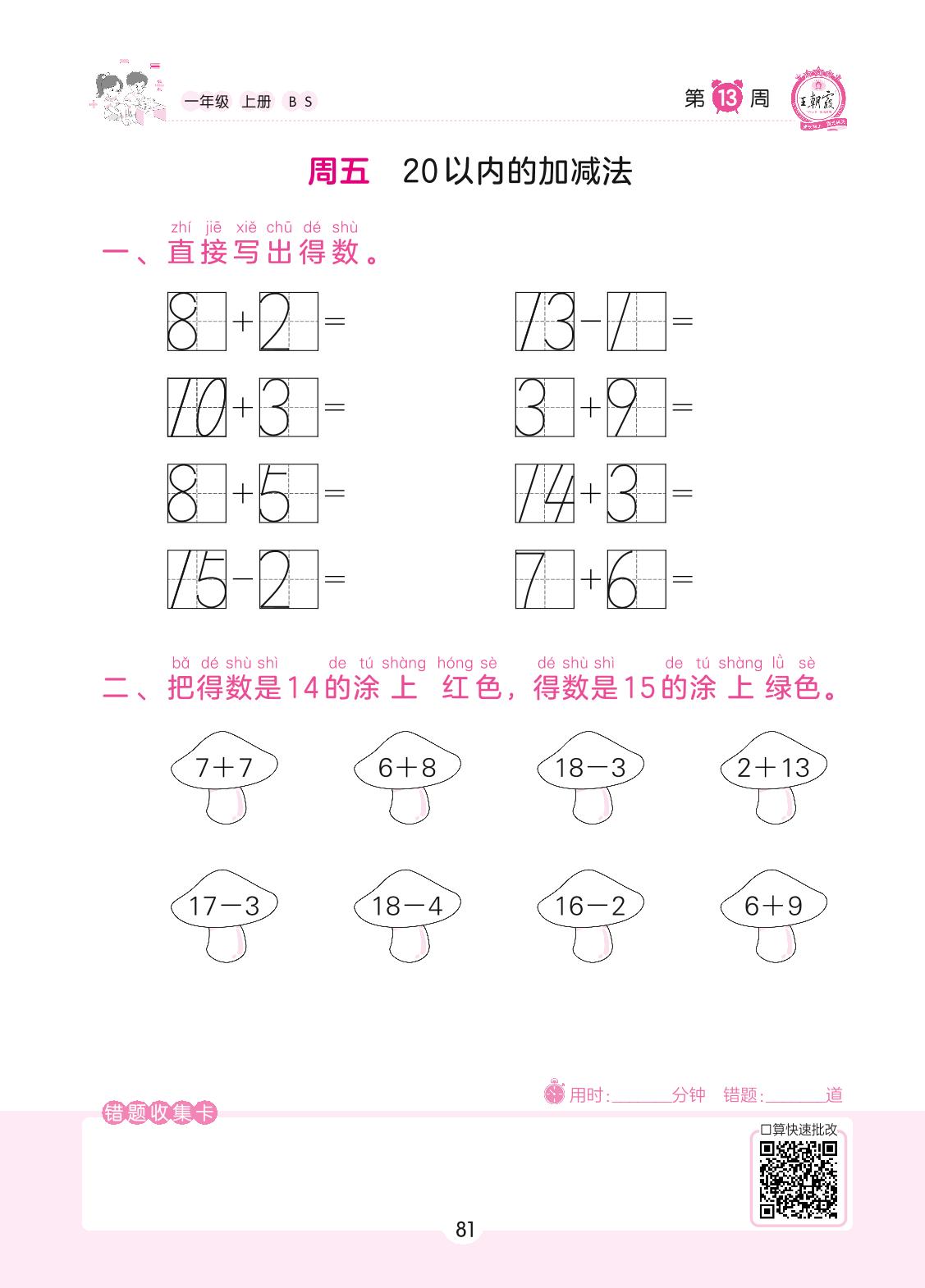 2022上册一年级数学北师版 第13周 周五