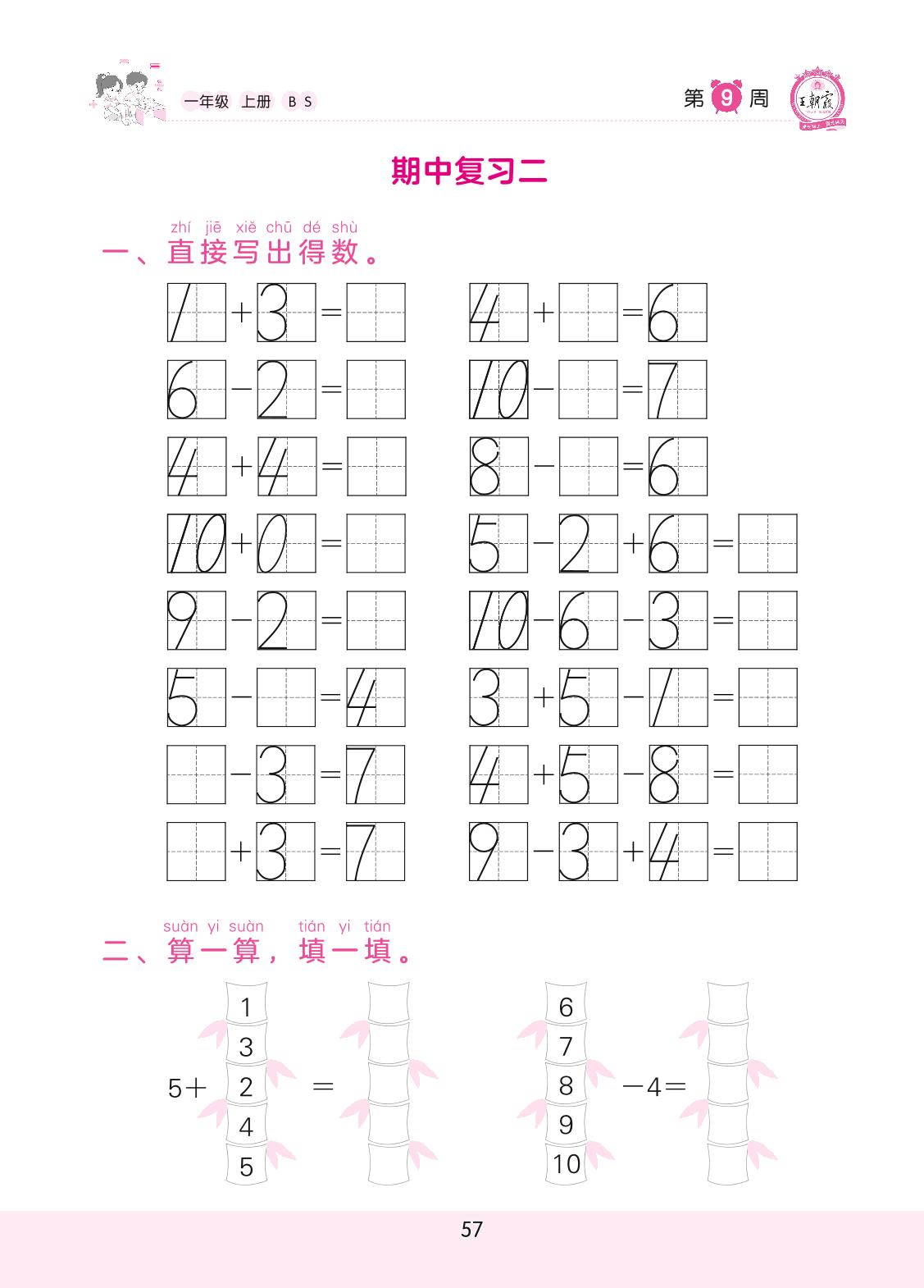 2022上册一年级数学北师版 第9周 期中复习二(计算专练)