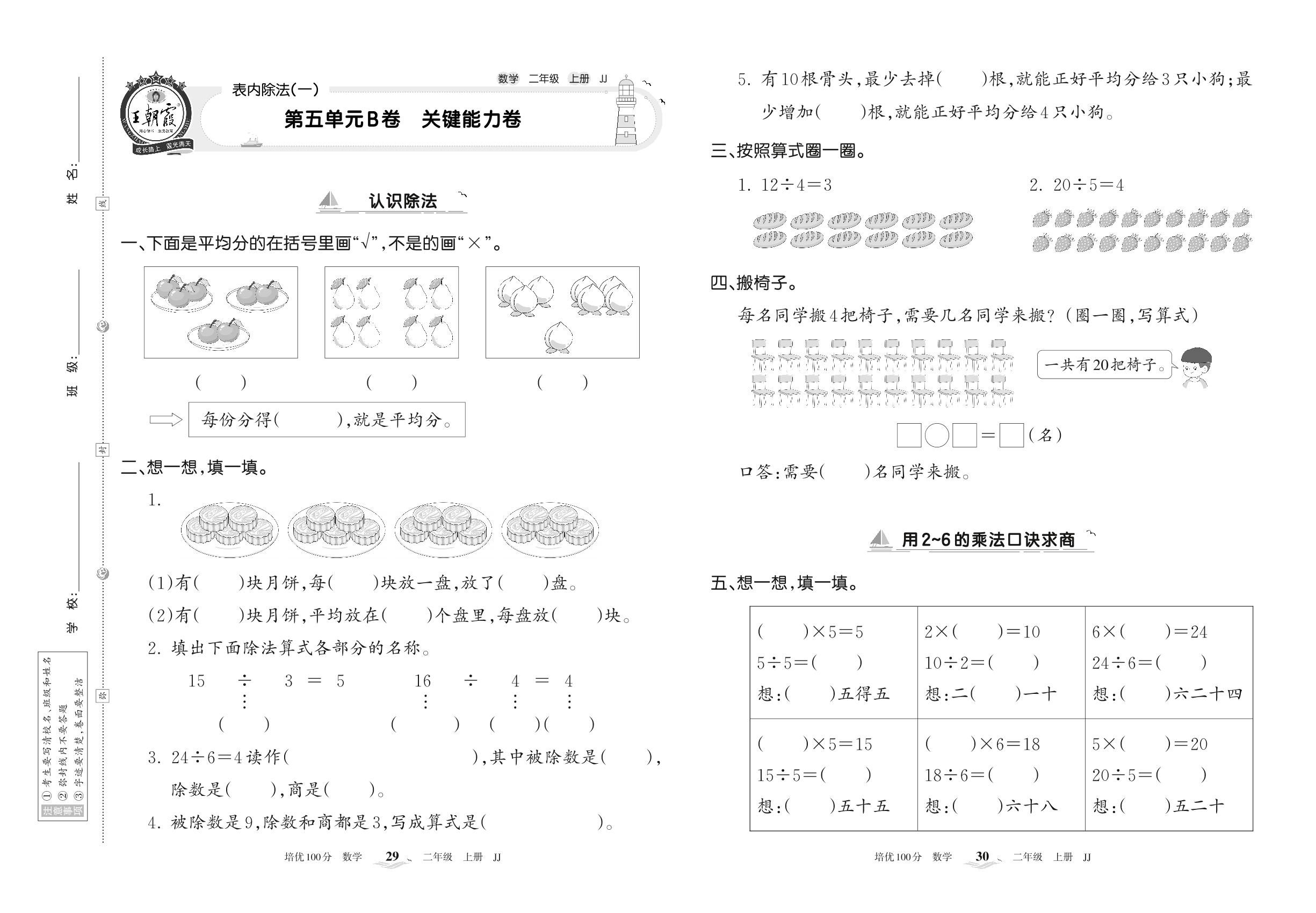 2022上册二年级数学冀教版 第五单元B卷 关键能力卷