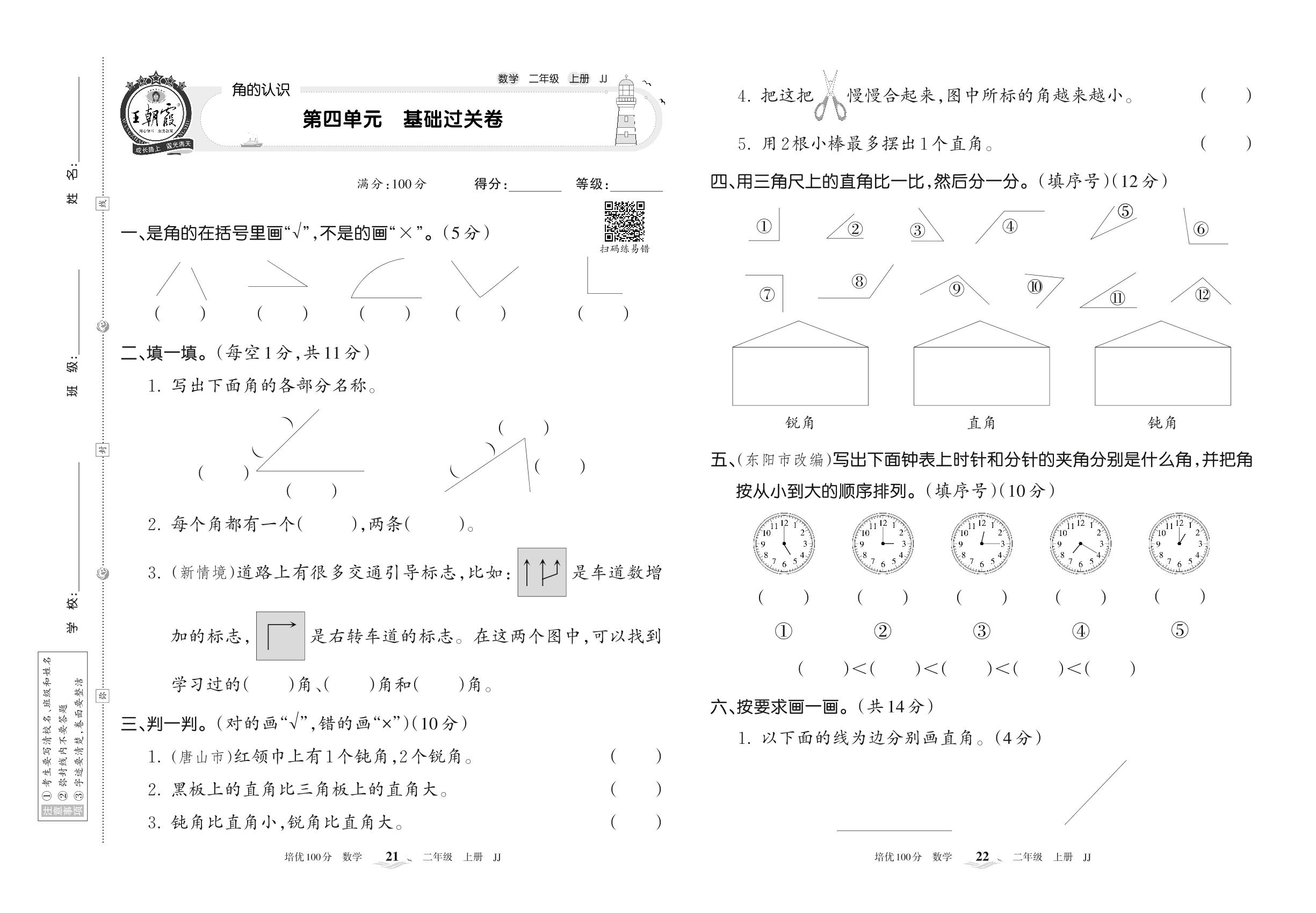 二年级数学冀教版上册单元卷