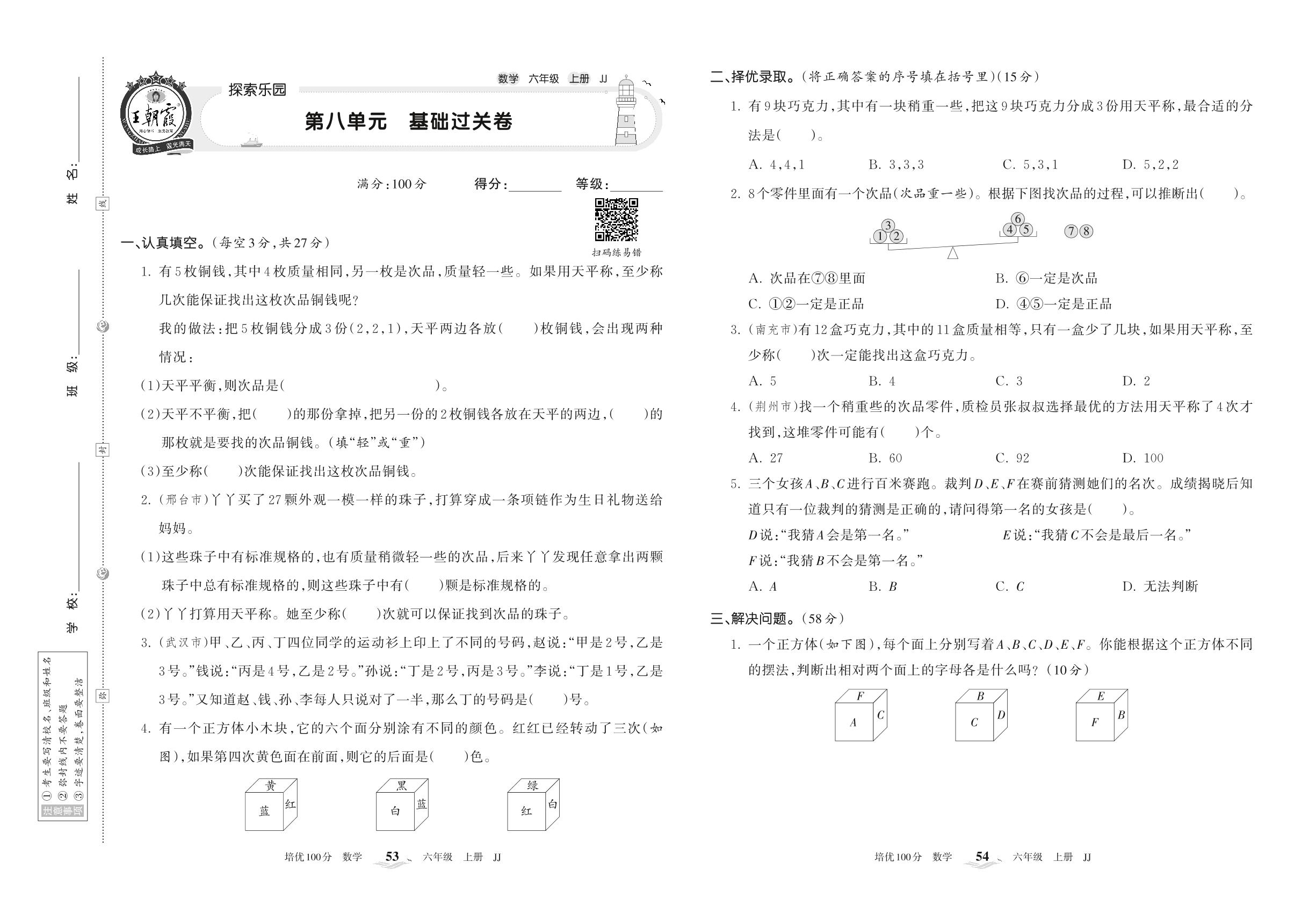 2022上册六年级数学冀教版 第八单元 基础过关卷