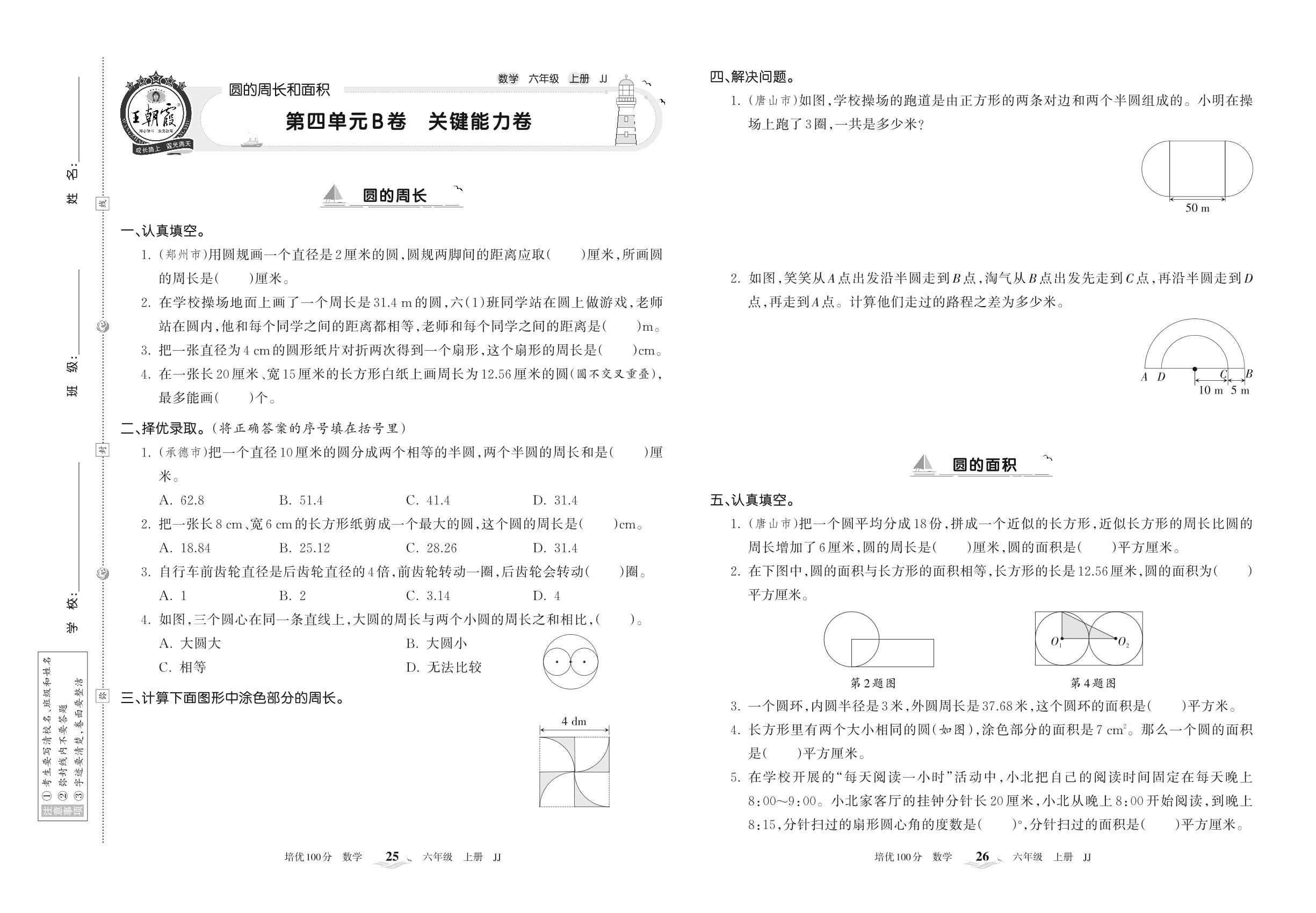 2022上册六年级数学冀教版 第四单元B卷 关键能力卷