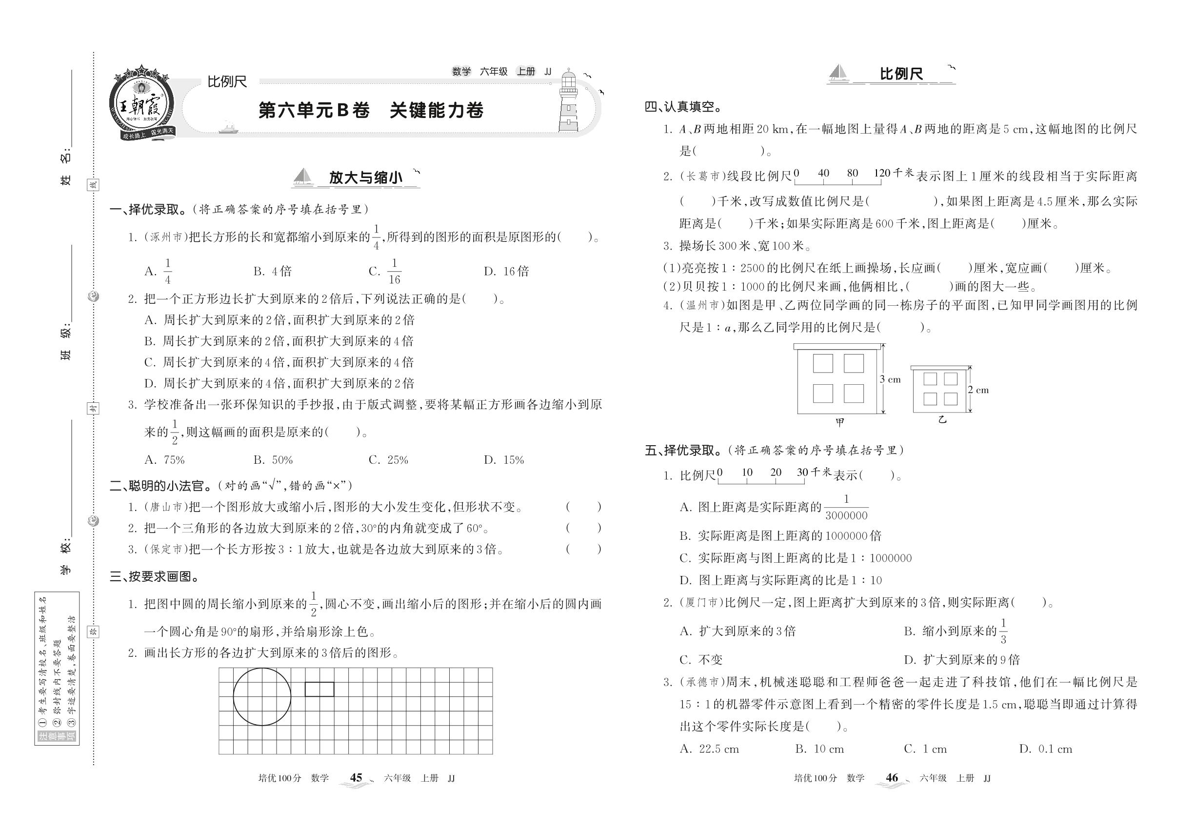 2022上册六年级数学冀教版 第六单元B卷 关键能力卷
