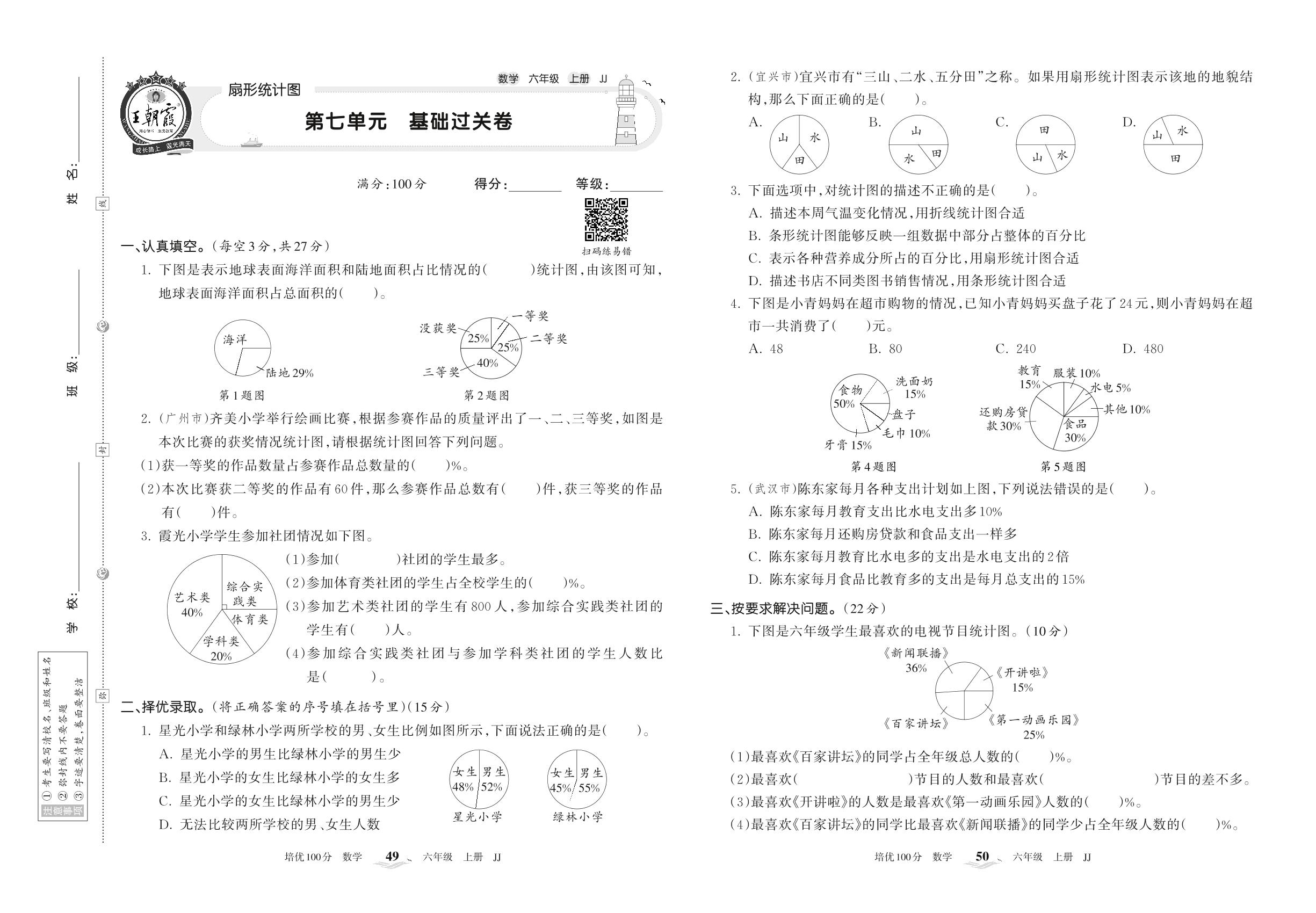 2022上册六年级数学冀教版 第七单元 基础过关卷