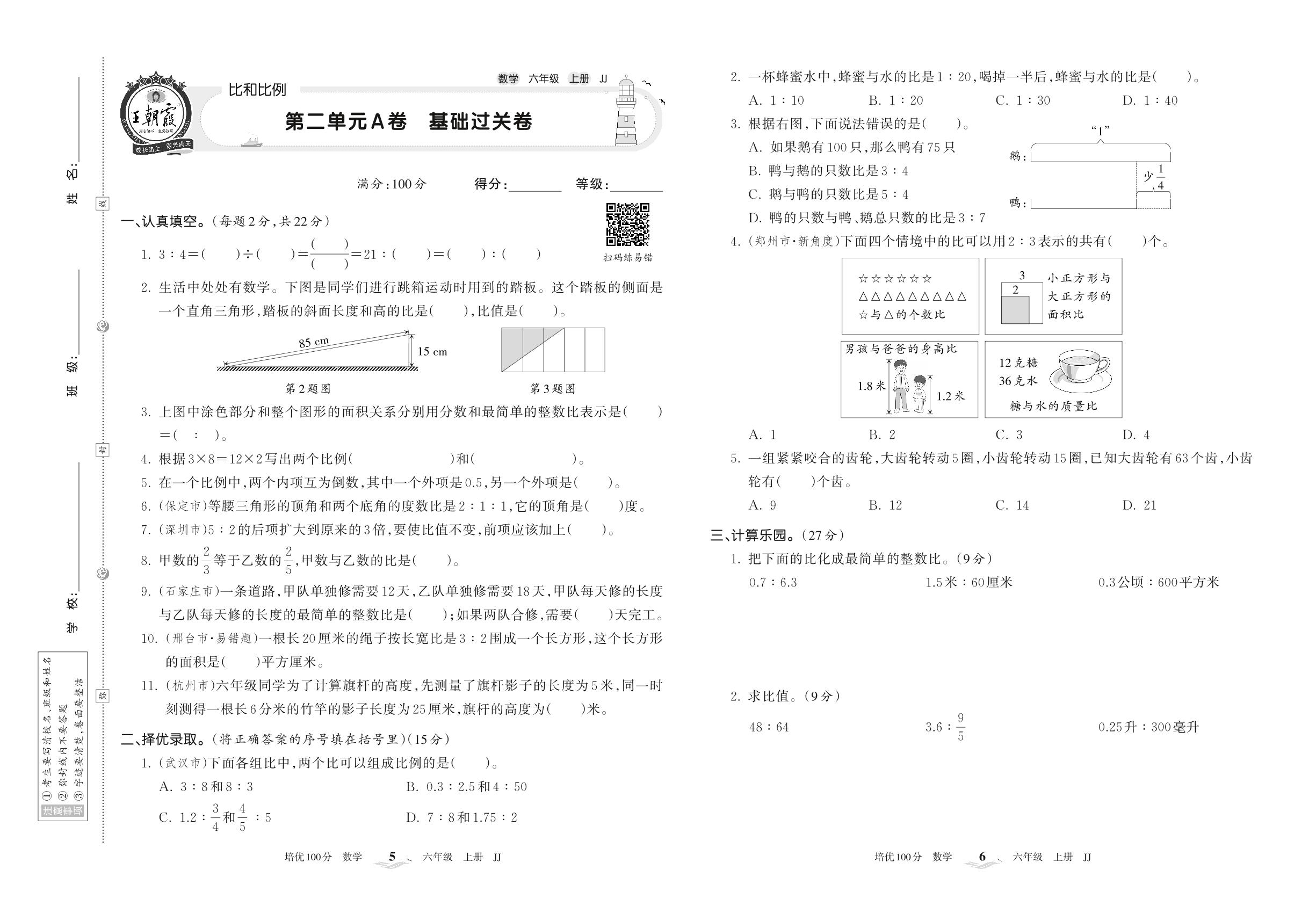 2022上册六年级数学冀教版 第二单元A卷 基础过关卷