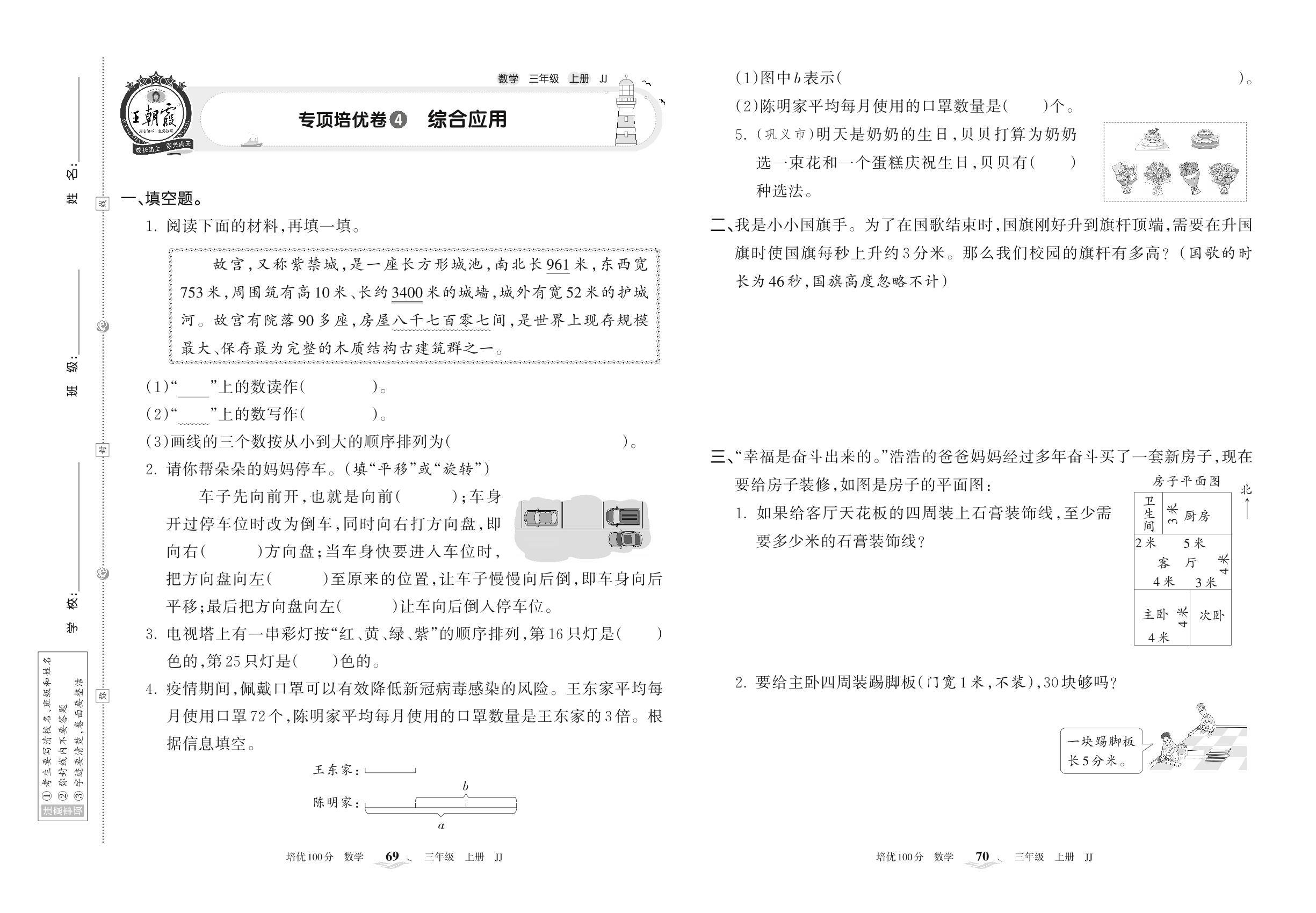 2022上册三年级数学冀教版 专项培优卷4 综合应用