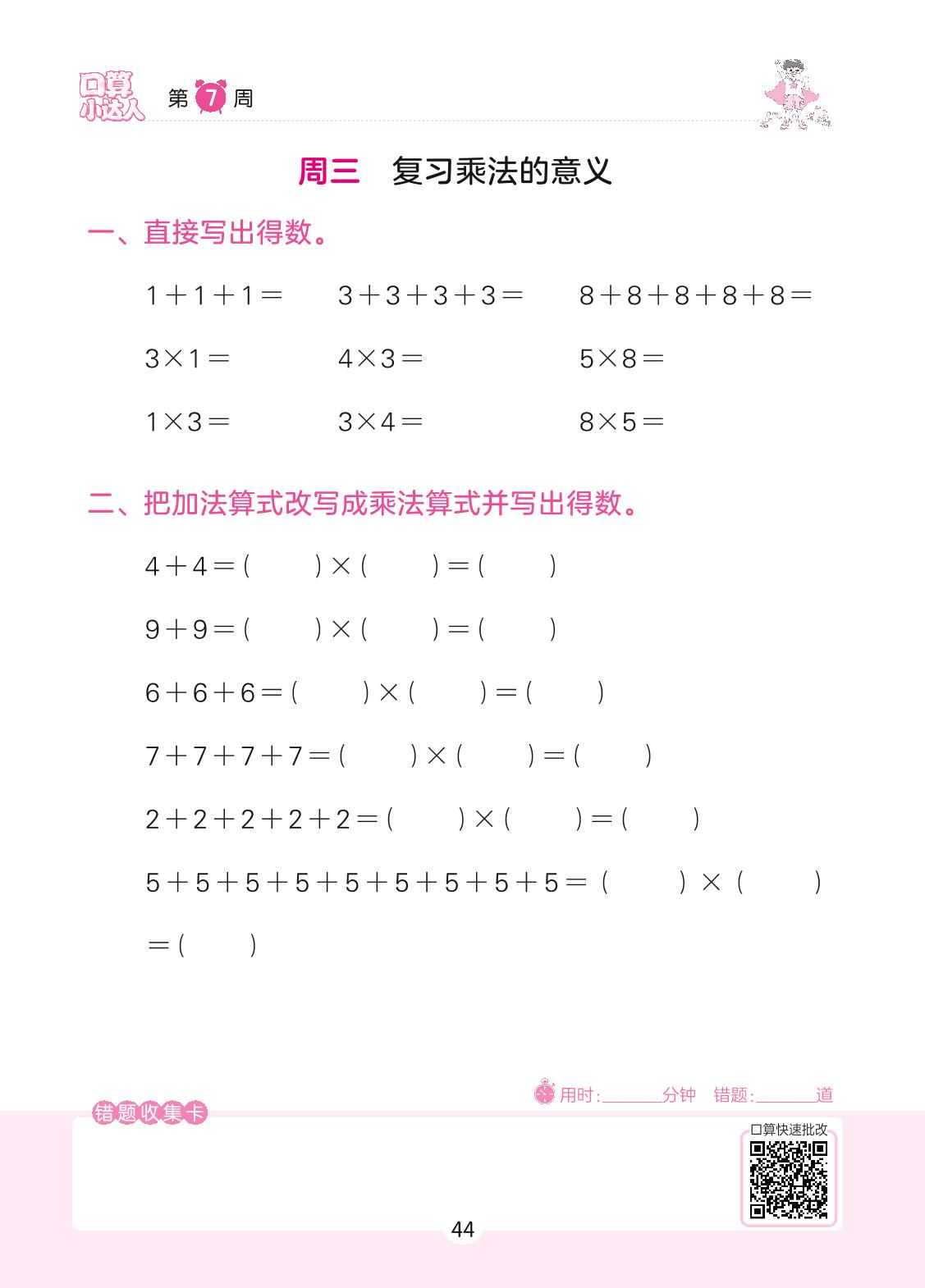 2022上册二年级数学北师版 第7周 周三