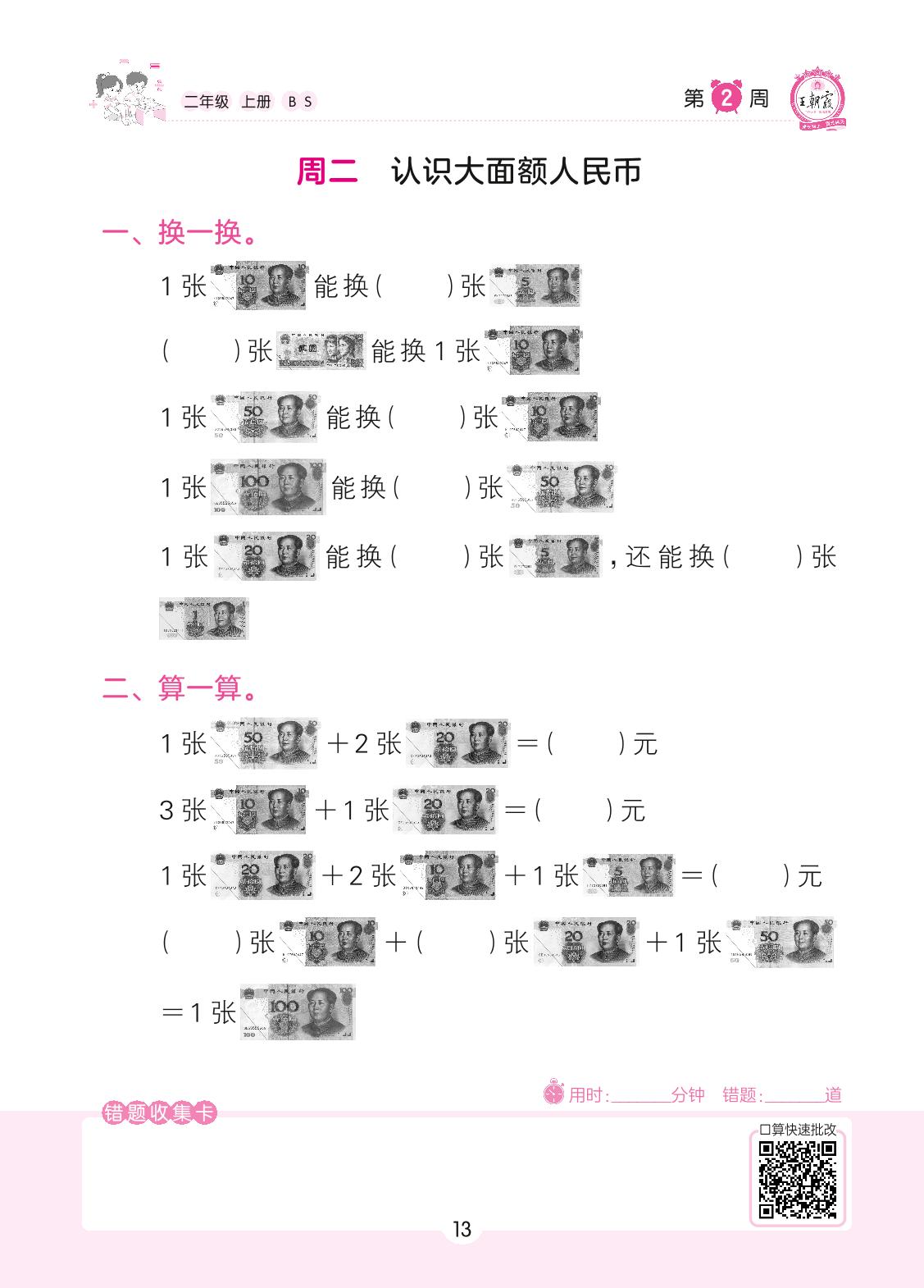 2022上册二年级数学北师版 第2周 周二
