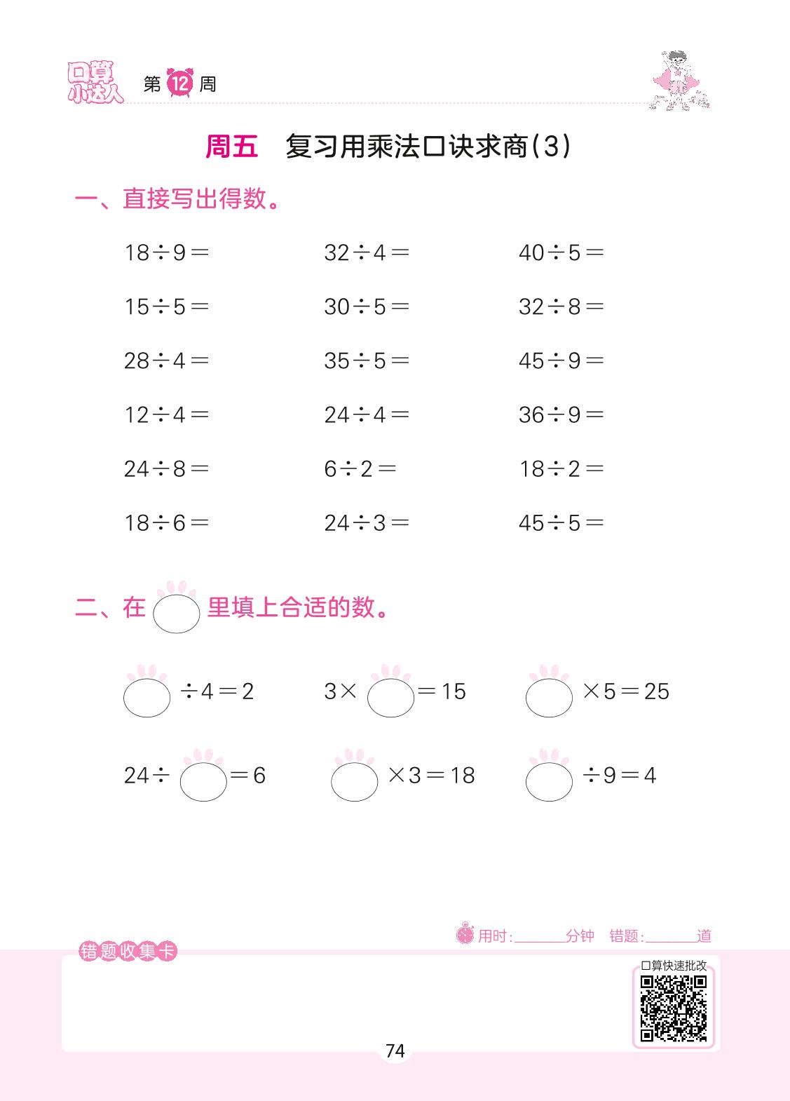 2022上册二年级数学北师版 第12周 周五