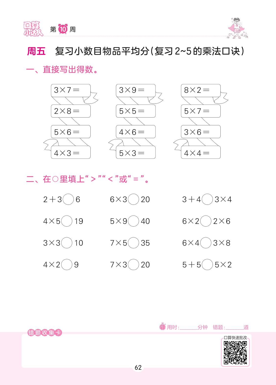 2022上册二年级数学北师版 第10周 周五