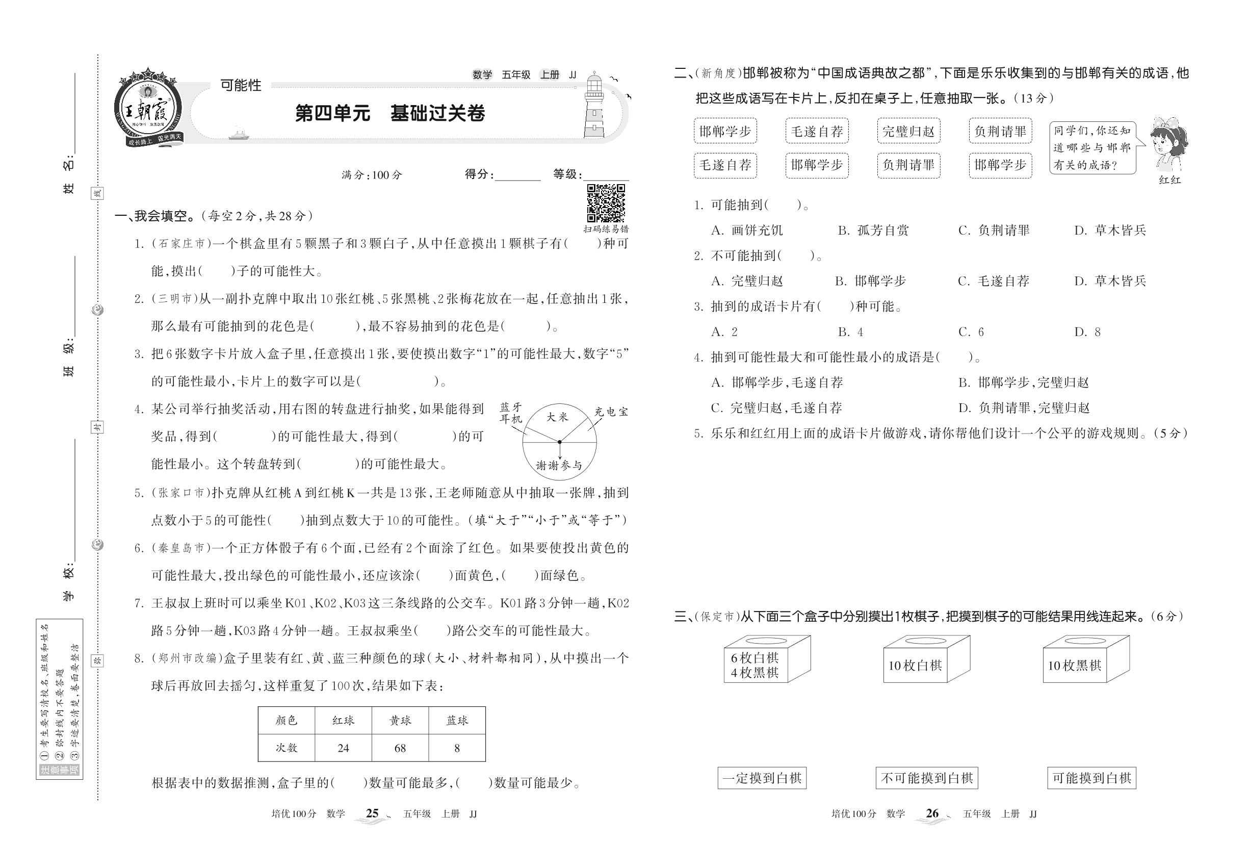 五年级数学冀教版上册单元卷