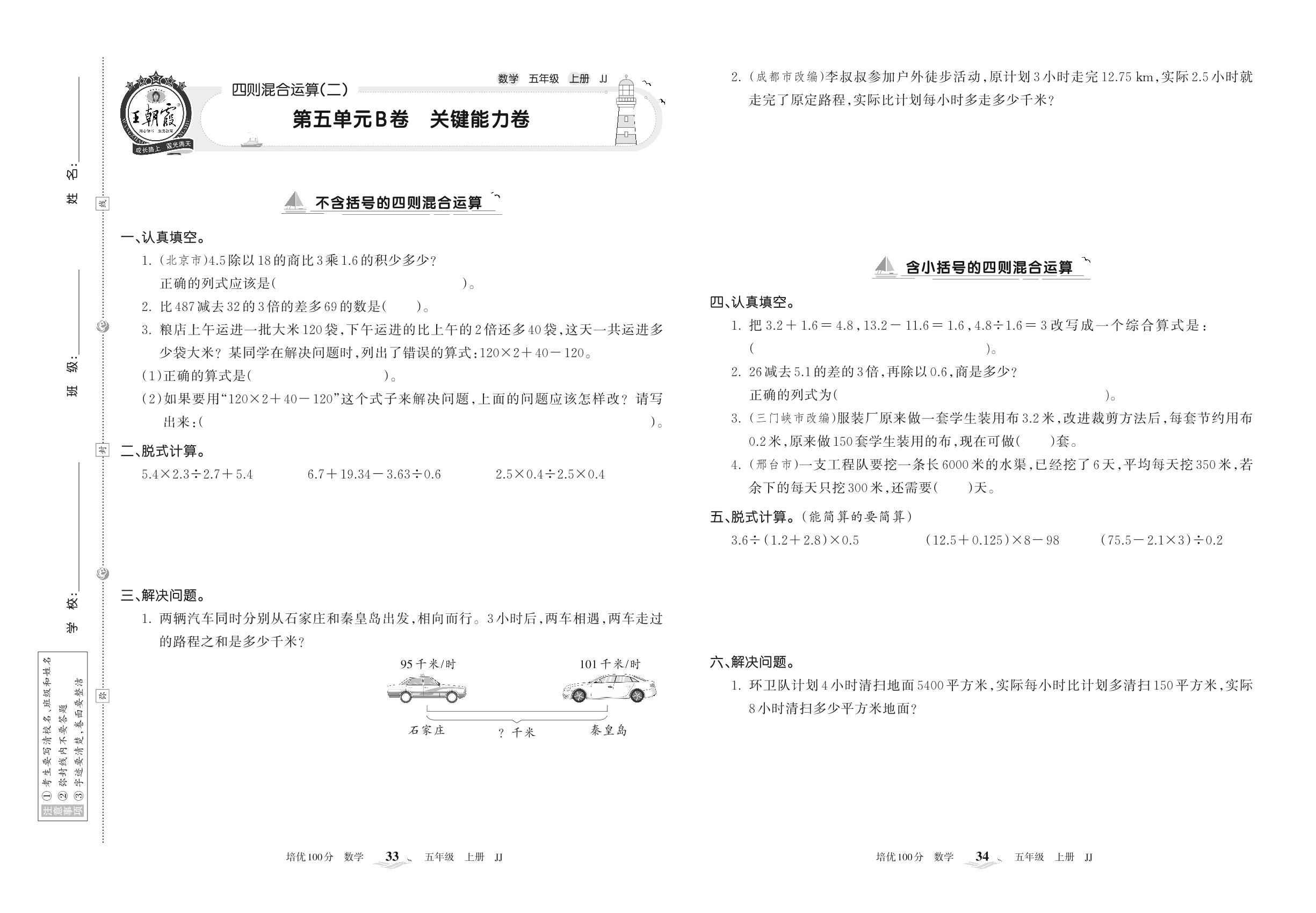 2022上册五年级数学冀教版 第五单元B卷 关键能力卷