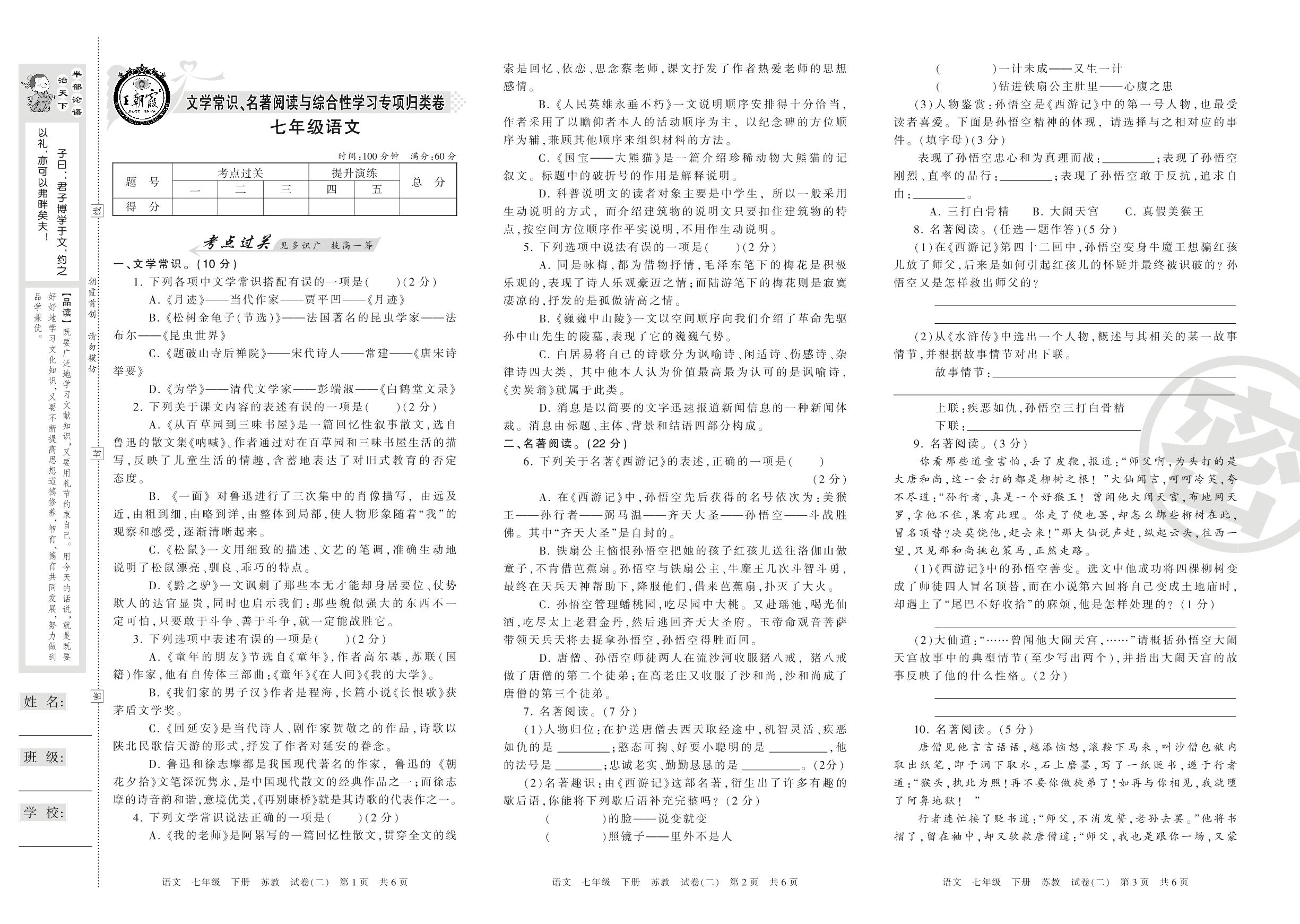 王朝霞期末专项卷七年级下册语文(苏教版)_R21080245545【2】