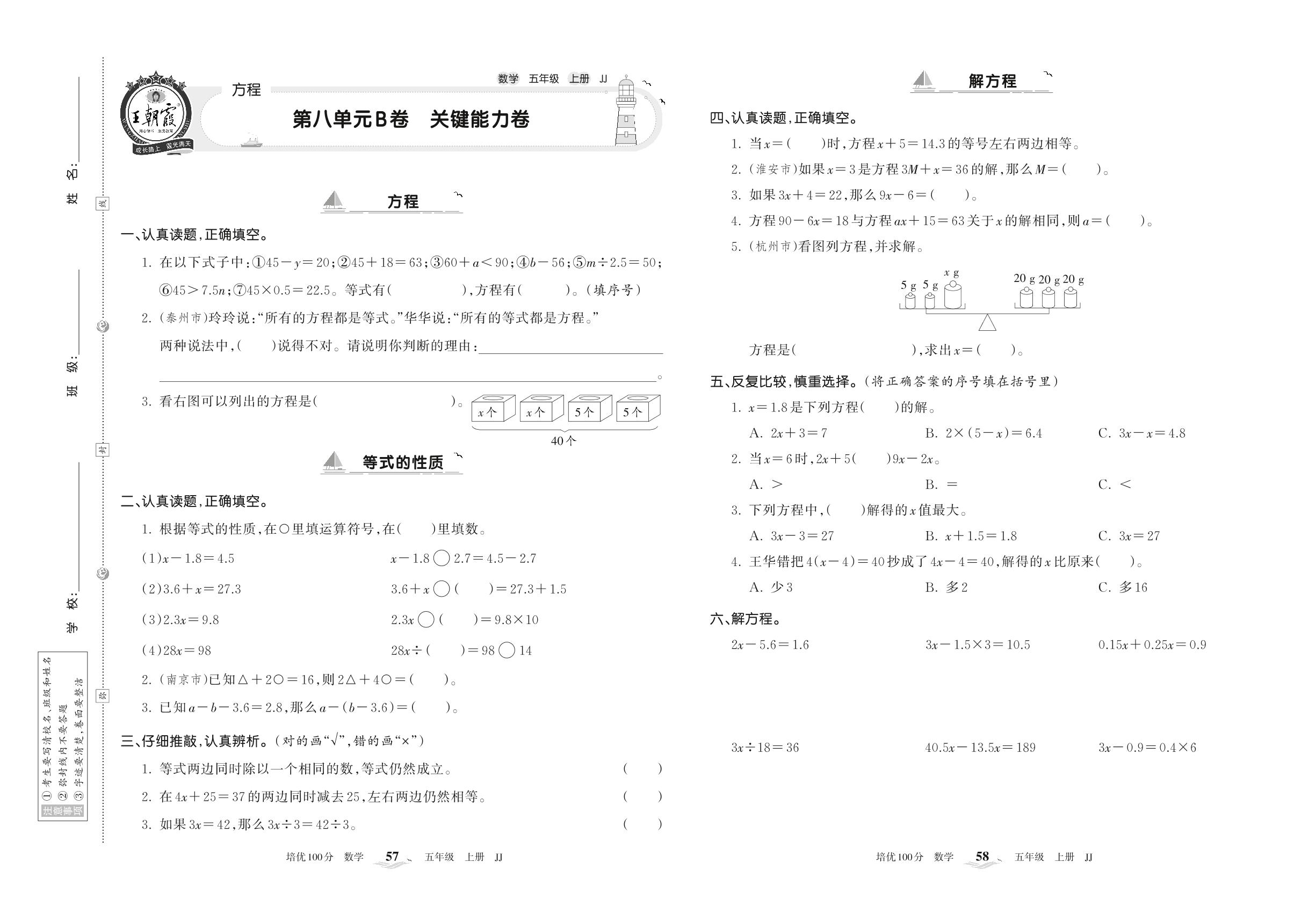 2022上册五年级数学冀教版 第八单元B卷 关键能力卷