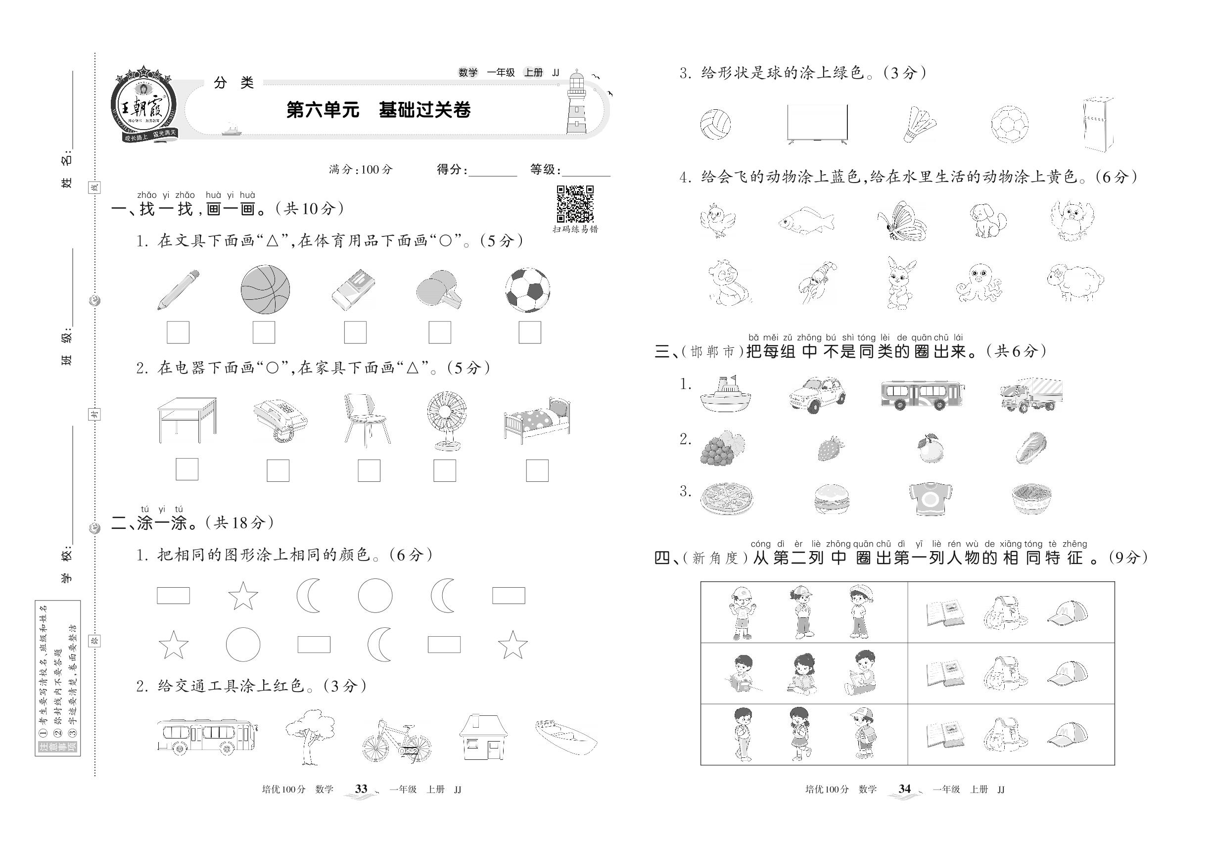 2022上册一年级数学冀教版 第六单元 基础过关卷