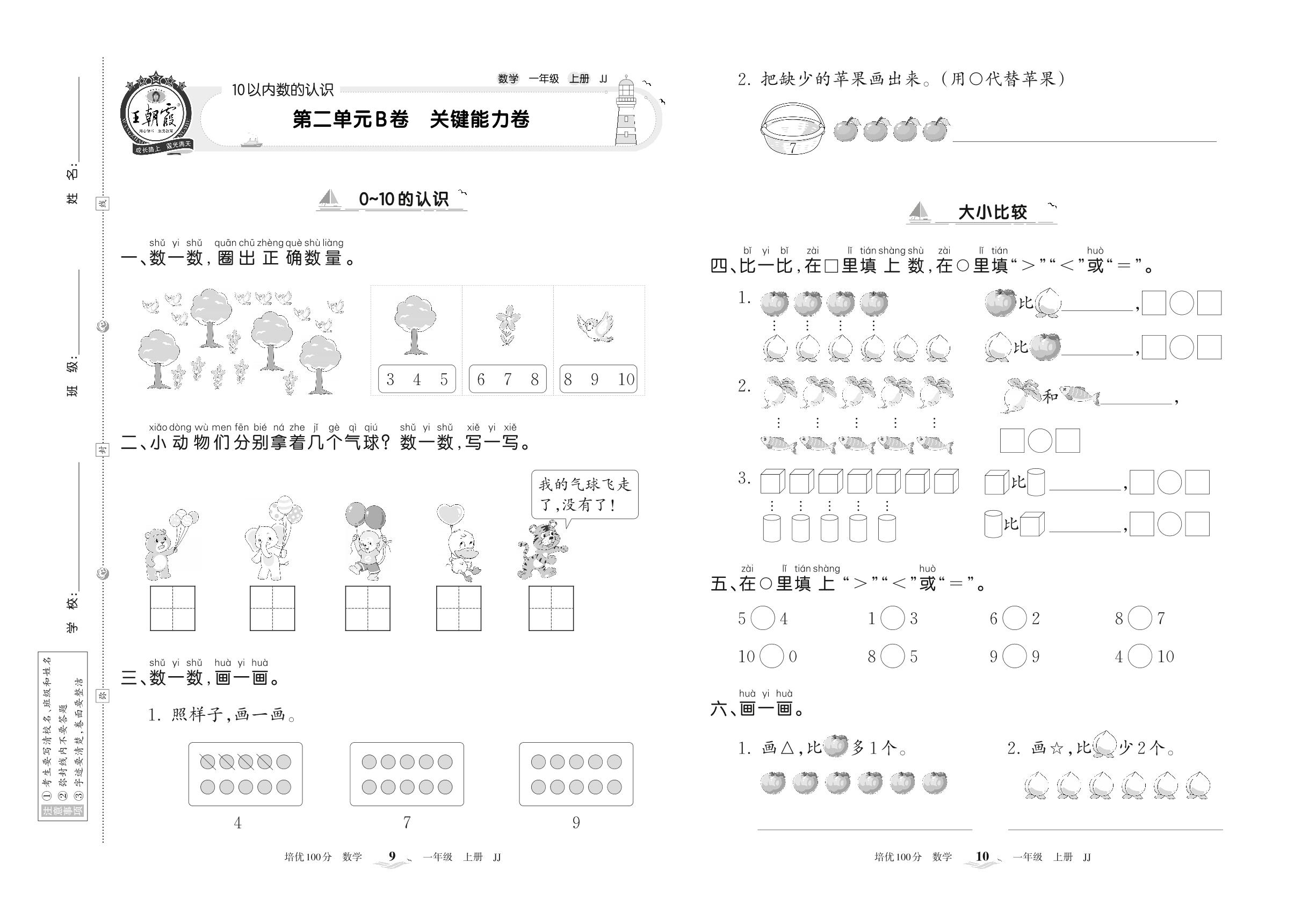 2022上册一年级数学冀教版 第二单元B卷 关键能力卷