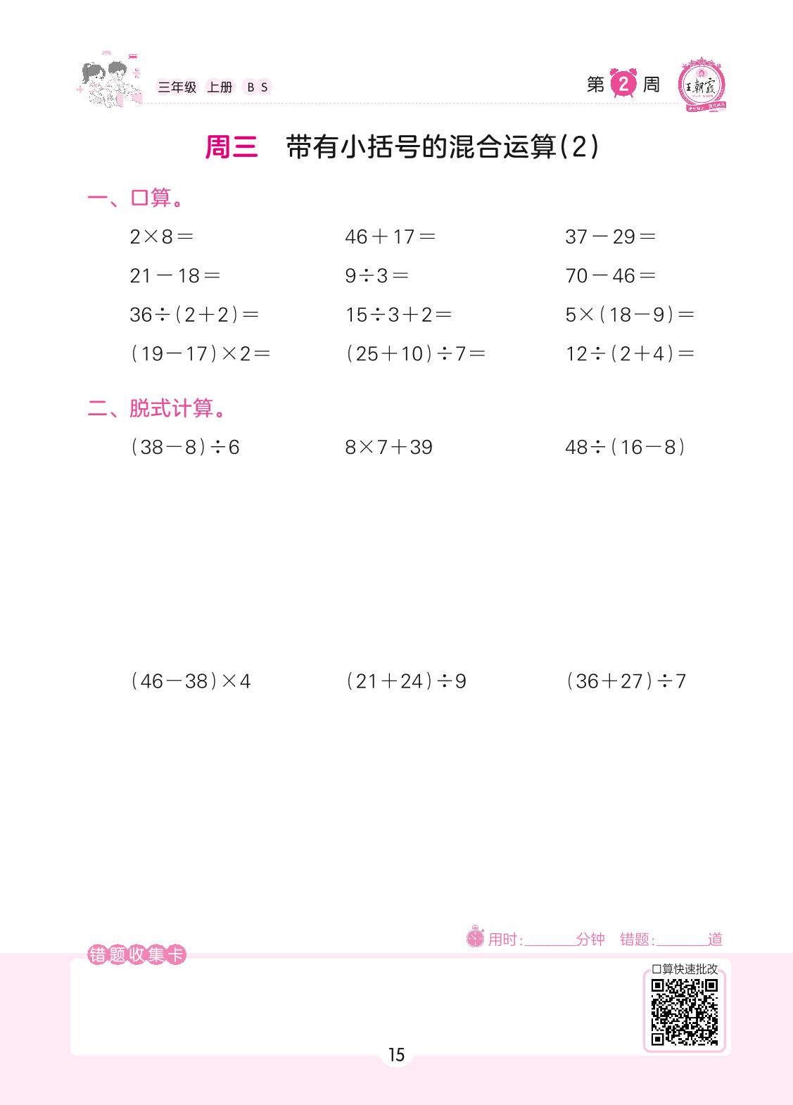 2022上册三年级数学北师版 第2周 周三