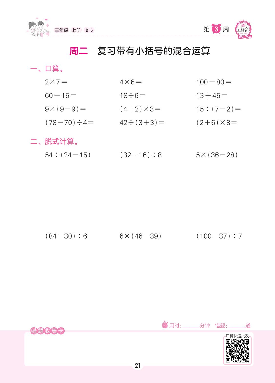 2022上册三年级数学北师版 第3周 周二