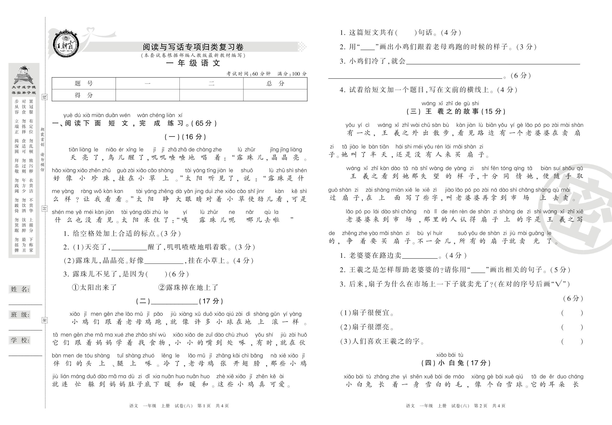 王朝霞期末专项卷一年级上册语文(人教版)_R210731184337【6】