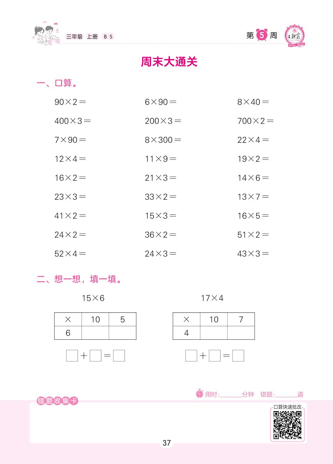 2022上册三年级数学北师版 第5周 周末大通关