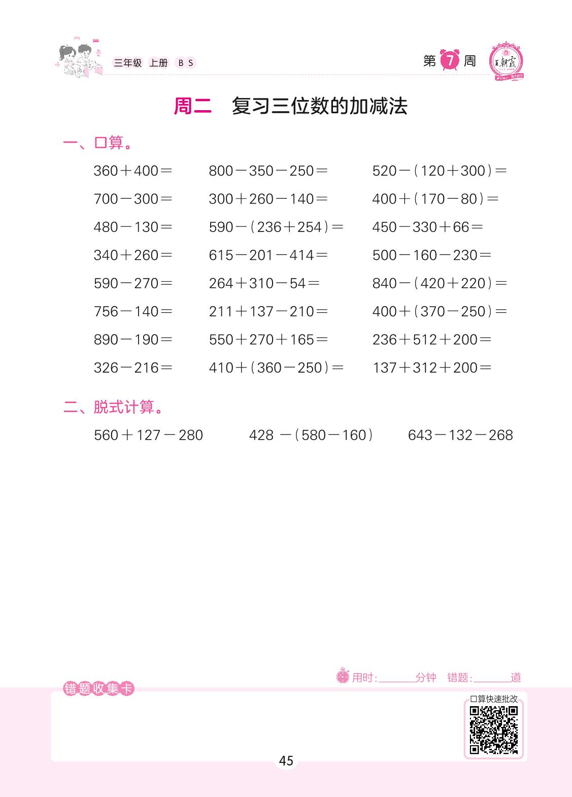 三年级数学北师版上册专项卷