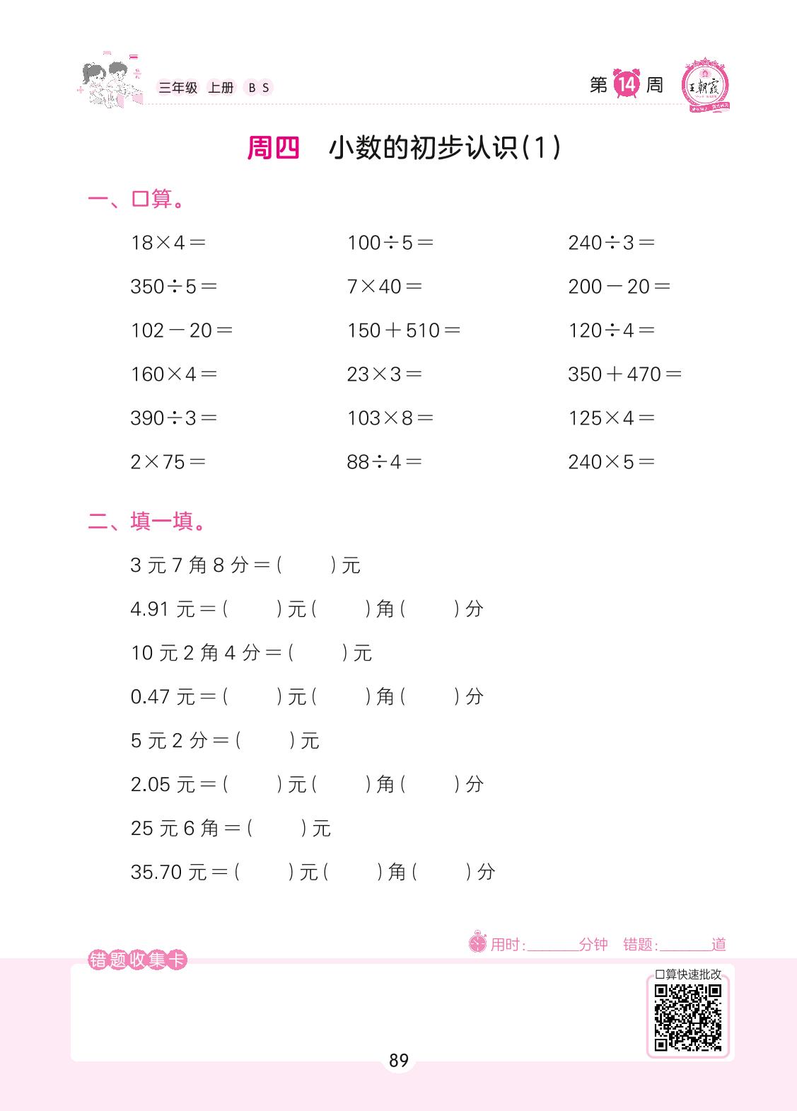 2022上册三年级数学北师版 第14周 周四