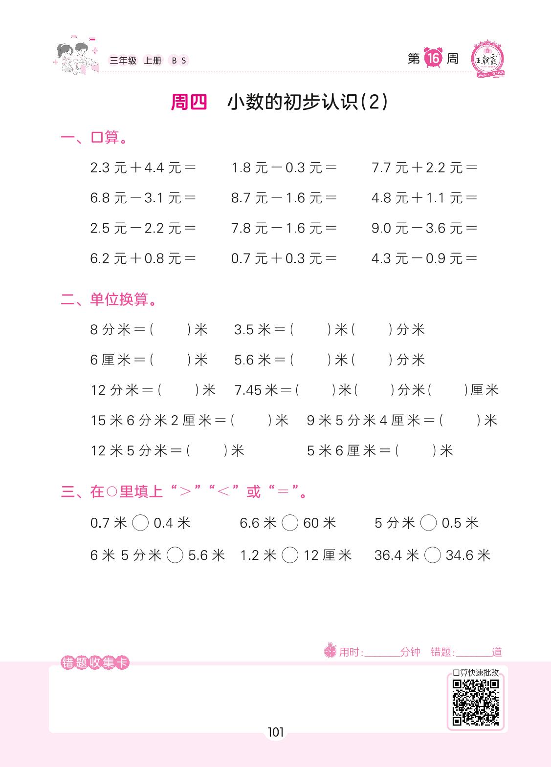 2022上册三年级数学北师版 第16周 周四