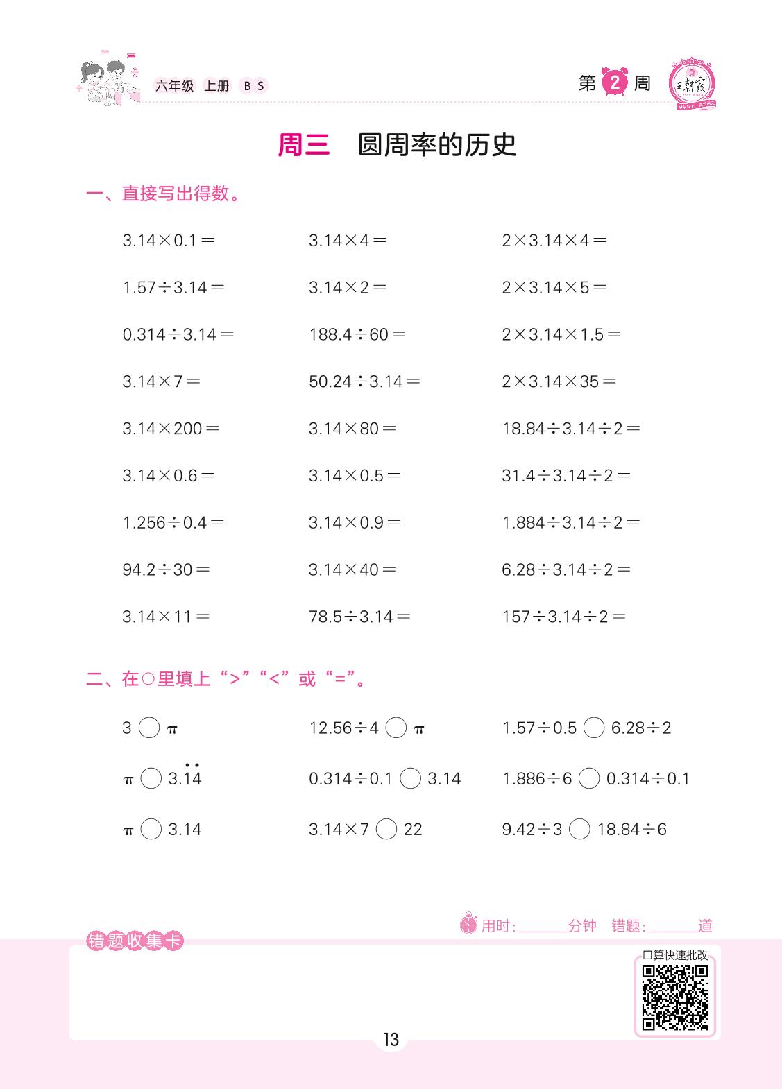 2022上册六年级数学北师版 第2周 周三