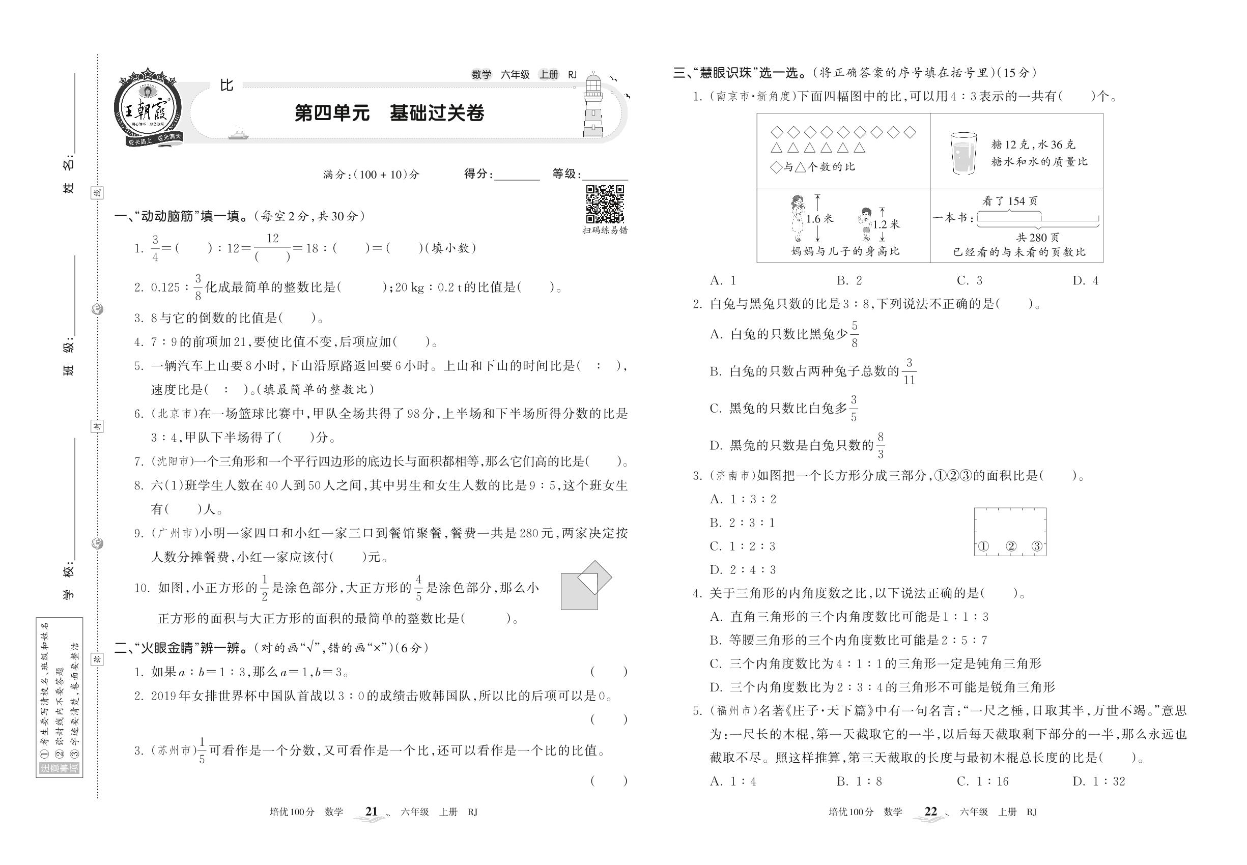 2022上册六年级数学人教版 第四单元 比基础过关卷