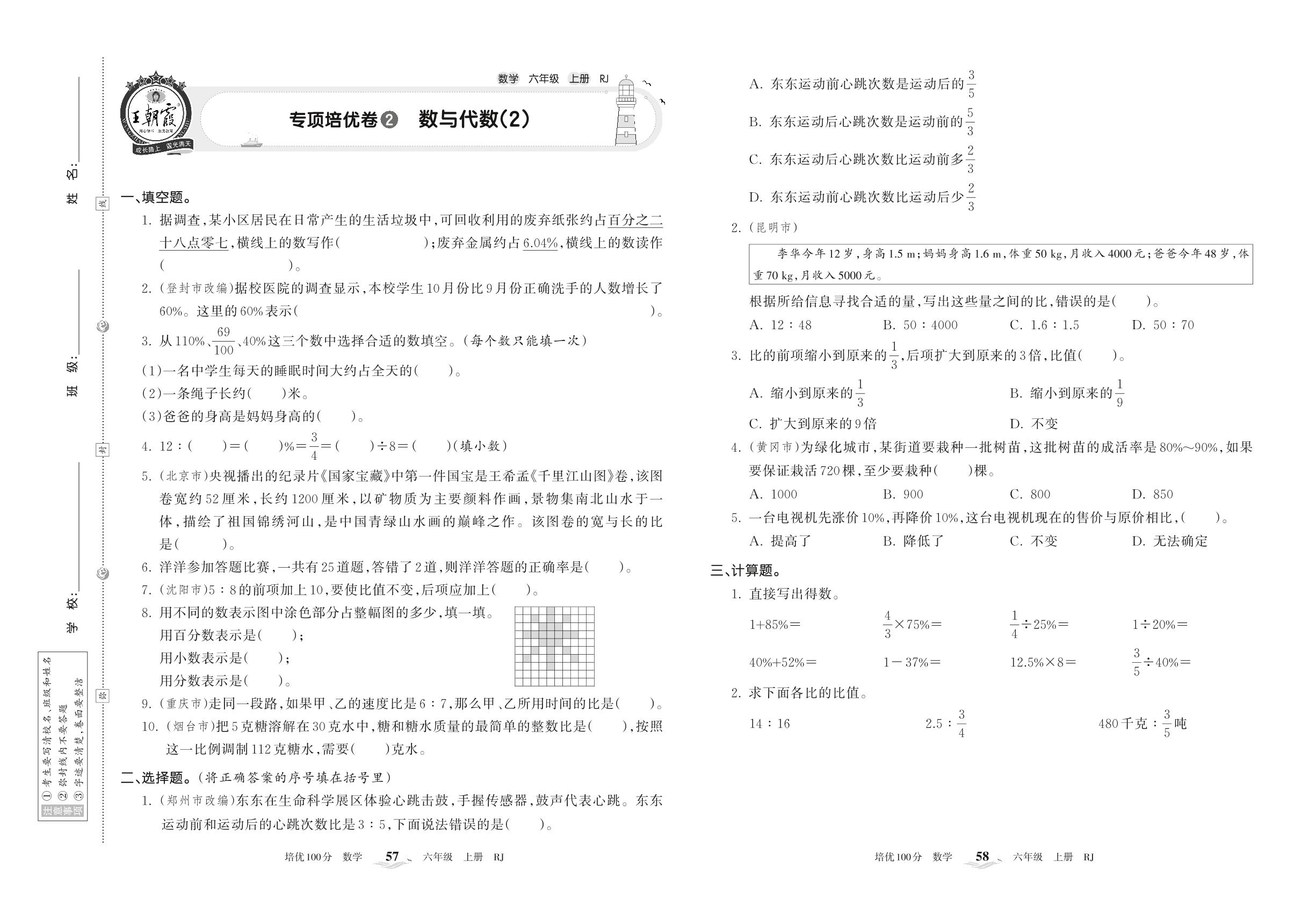 2022上册六年级数学人教版 专项培优卷2 数与代数(2)