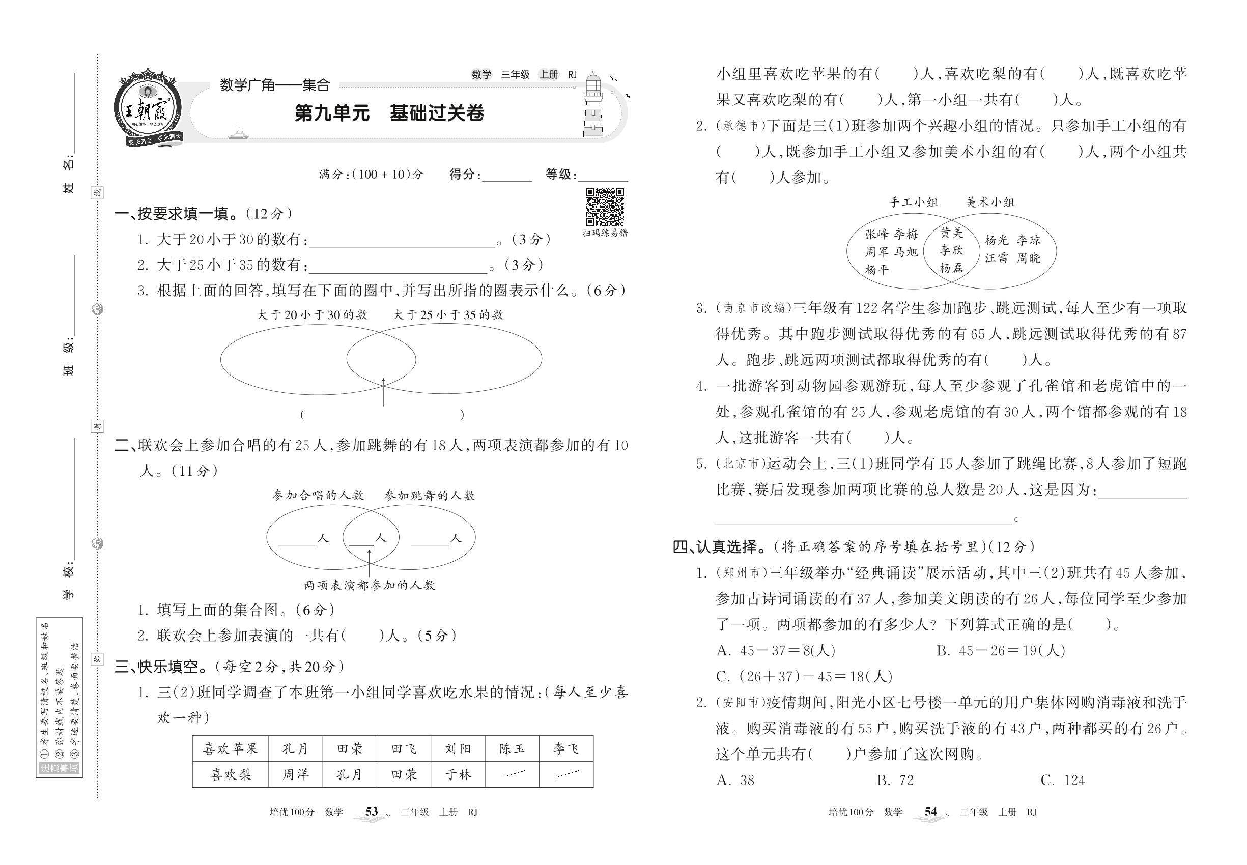 2022上册三年级数学人教版 第九单元 基础过关卷