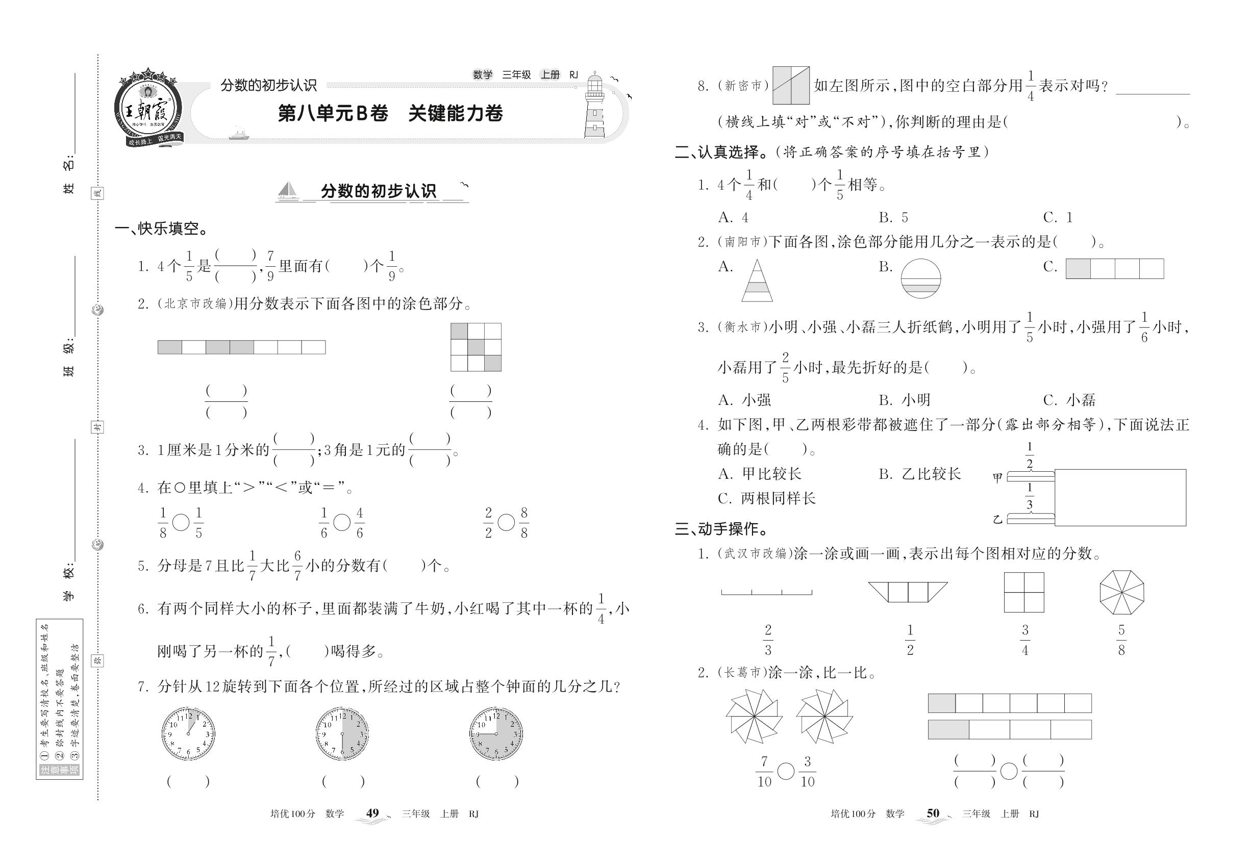 2022上册三年级数学人教版 第八单元B卷 关键能力卷