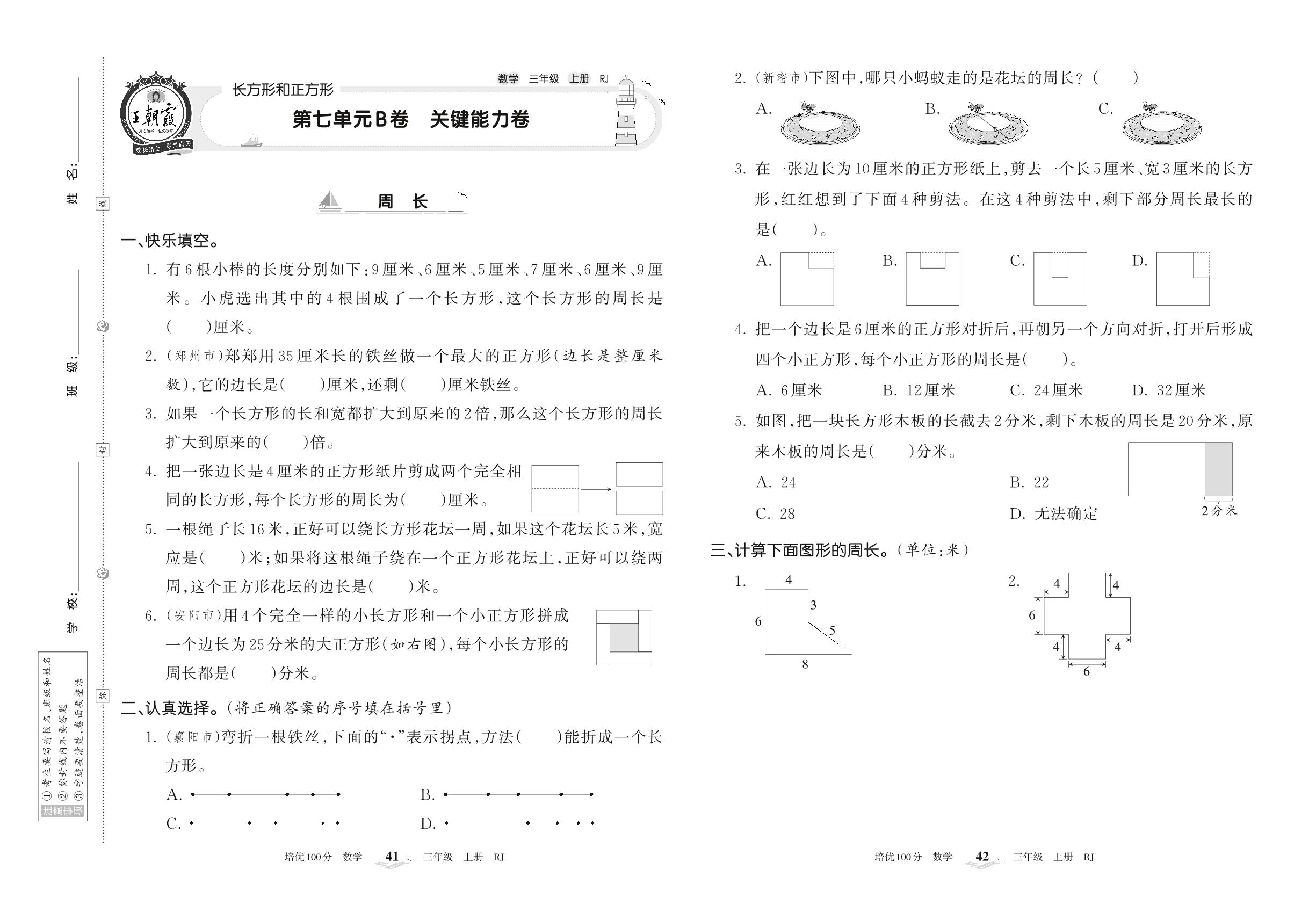 2022上册三年级数学人教版 第七单元B卷 关键能力卷