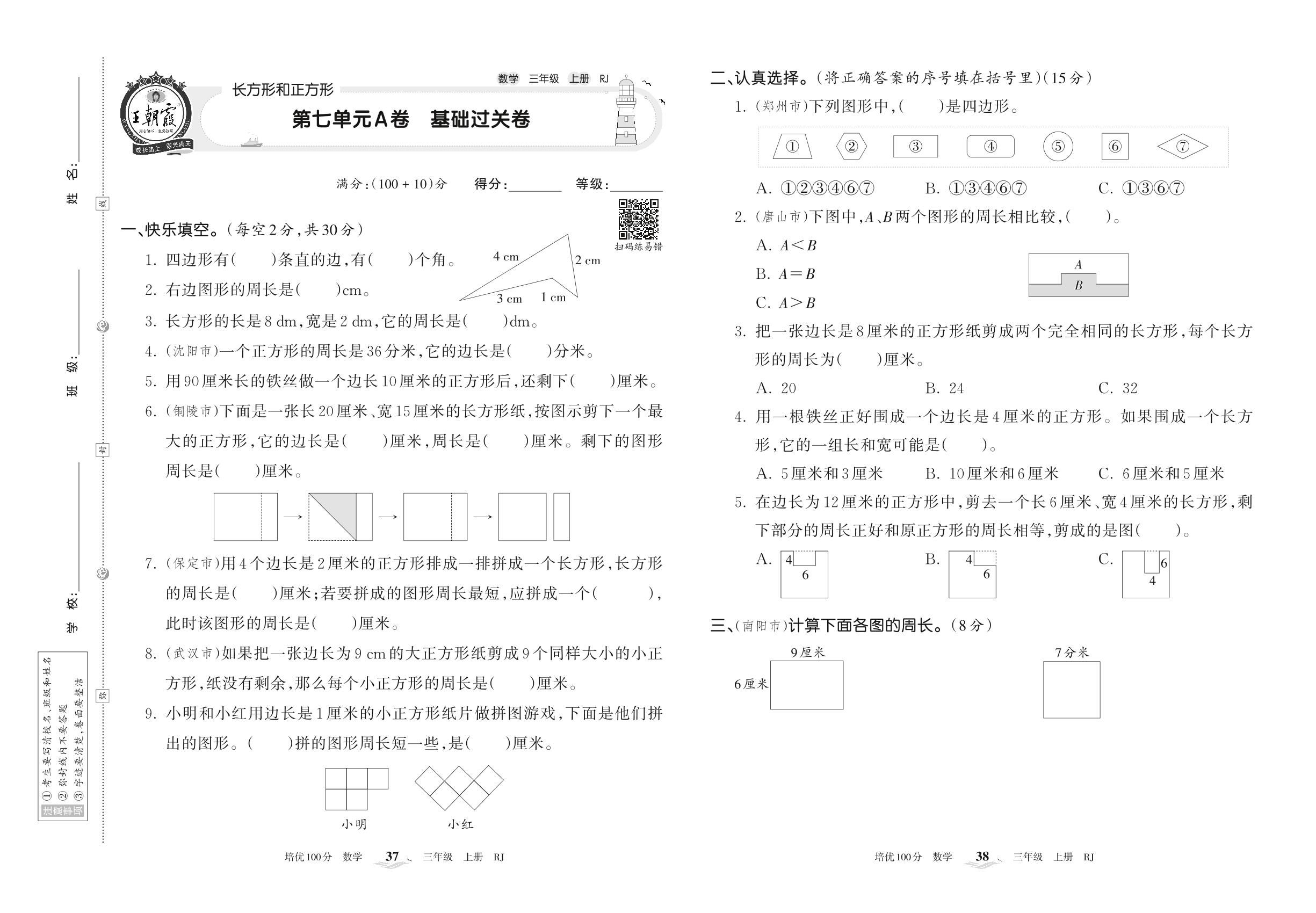 2022上册三年级数学人教版 第七单元A卷 基础过关卷