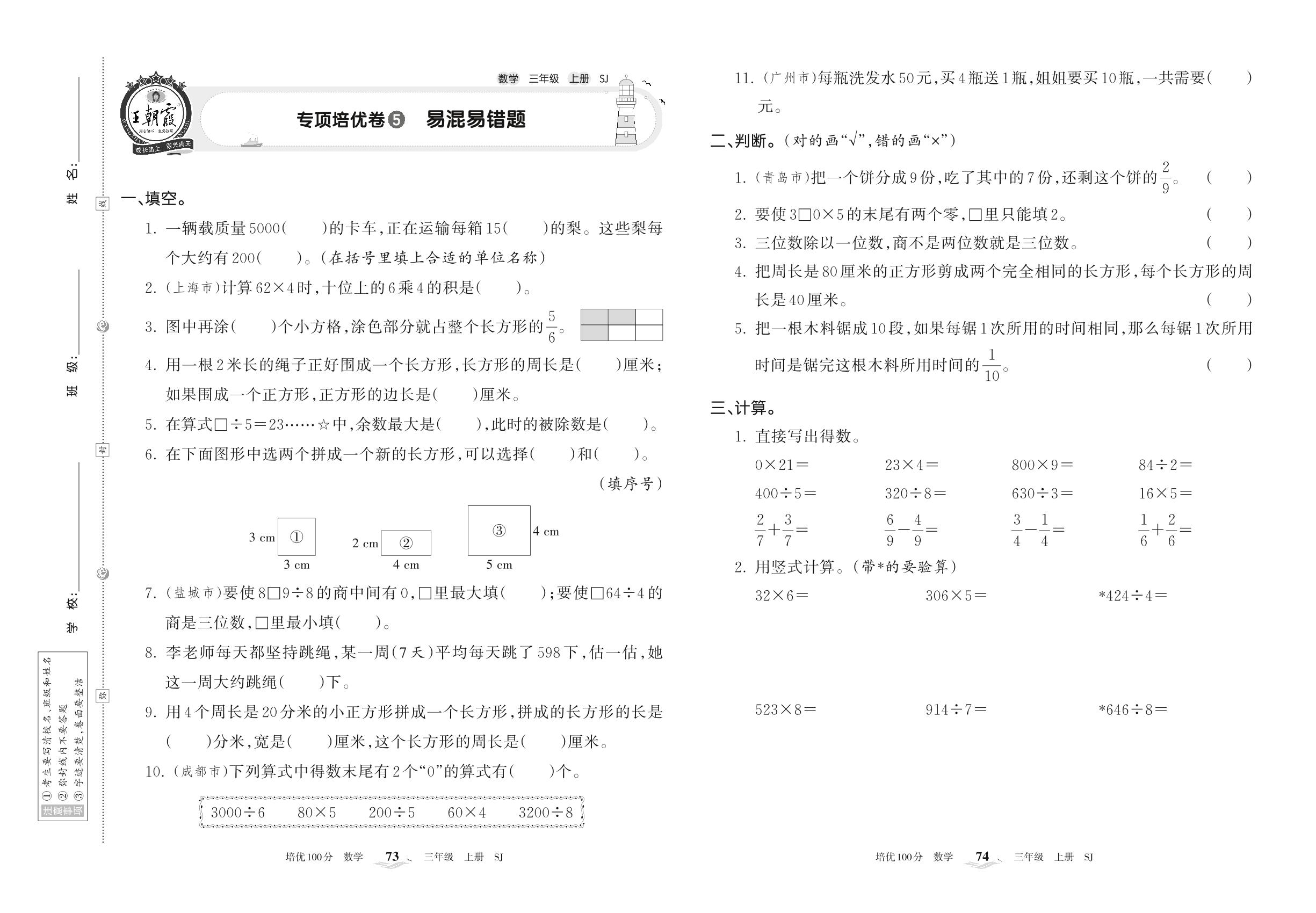 2022上册三年级数学苏教版 专项培优卷5 易混易错题