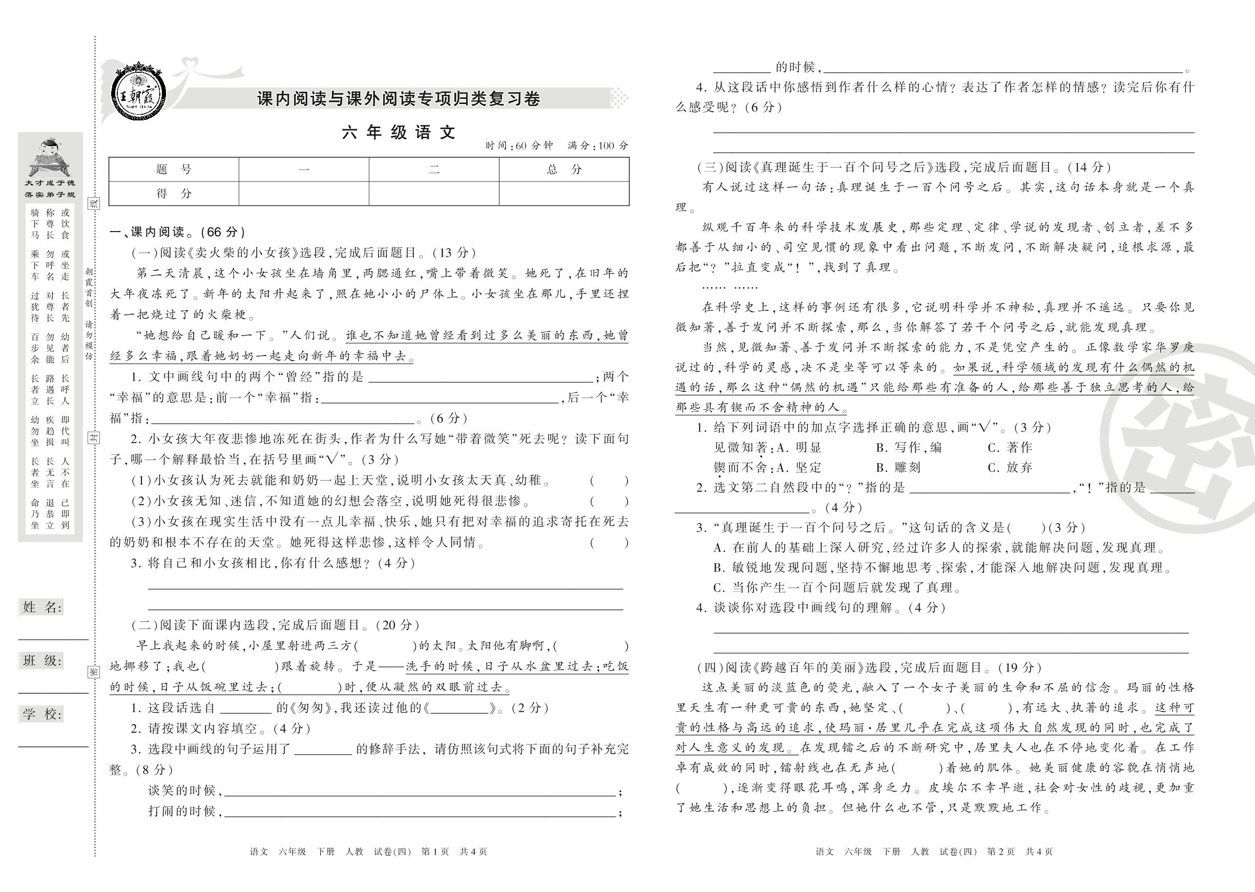 王朝霞期末专项卷六年级下册语文(人教版)_R21080250603【4】