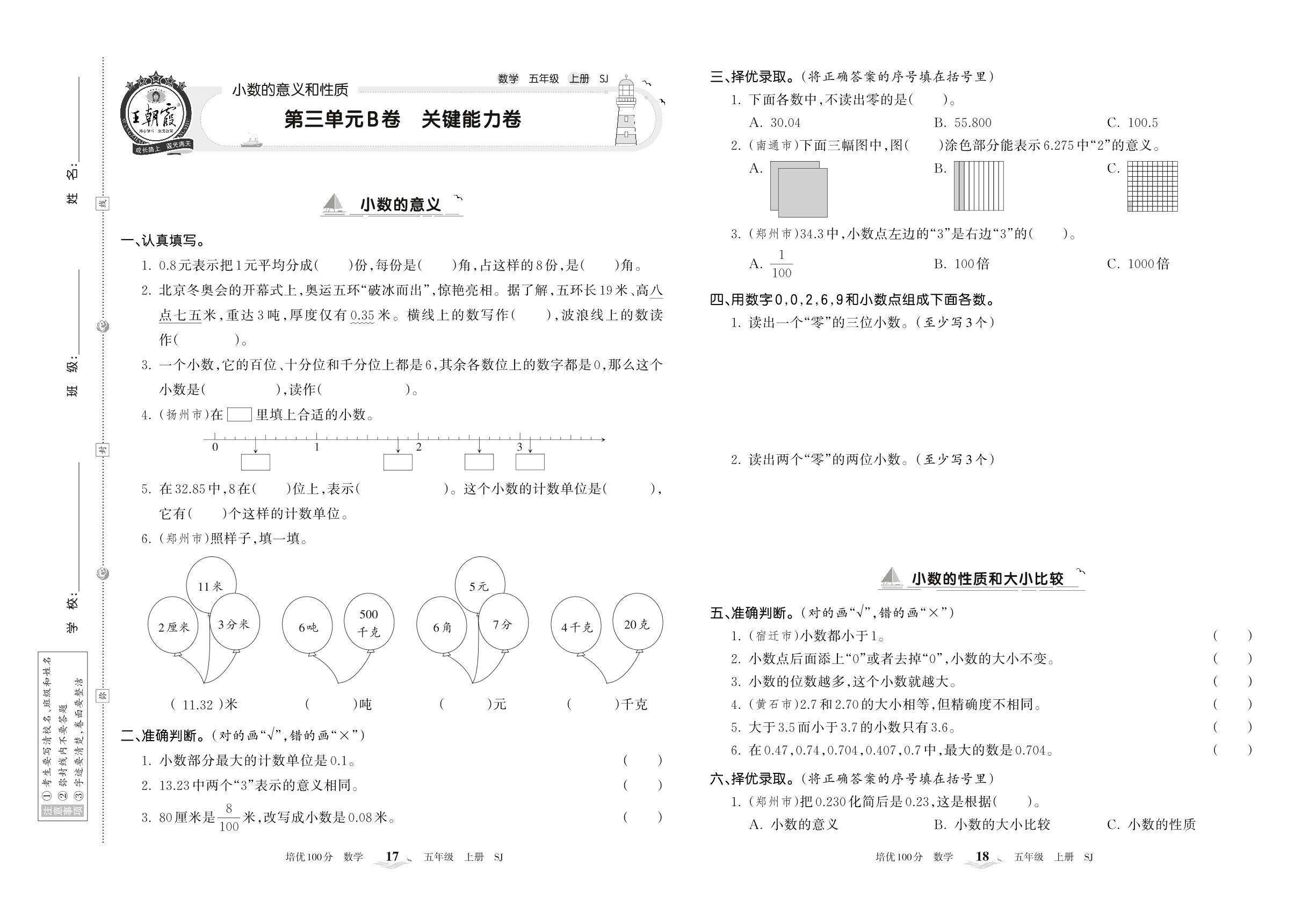 2022上册五年级数学苏教版 第三单元B卷 关键能力卷