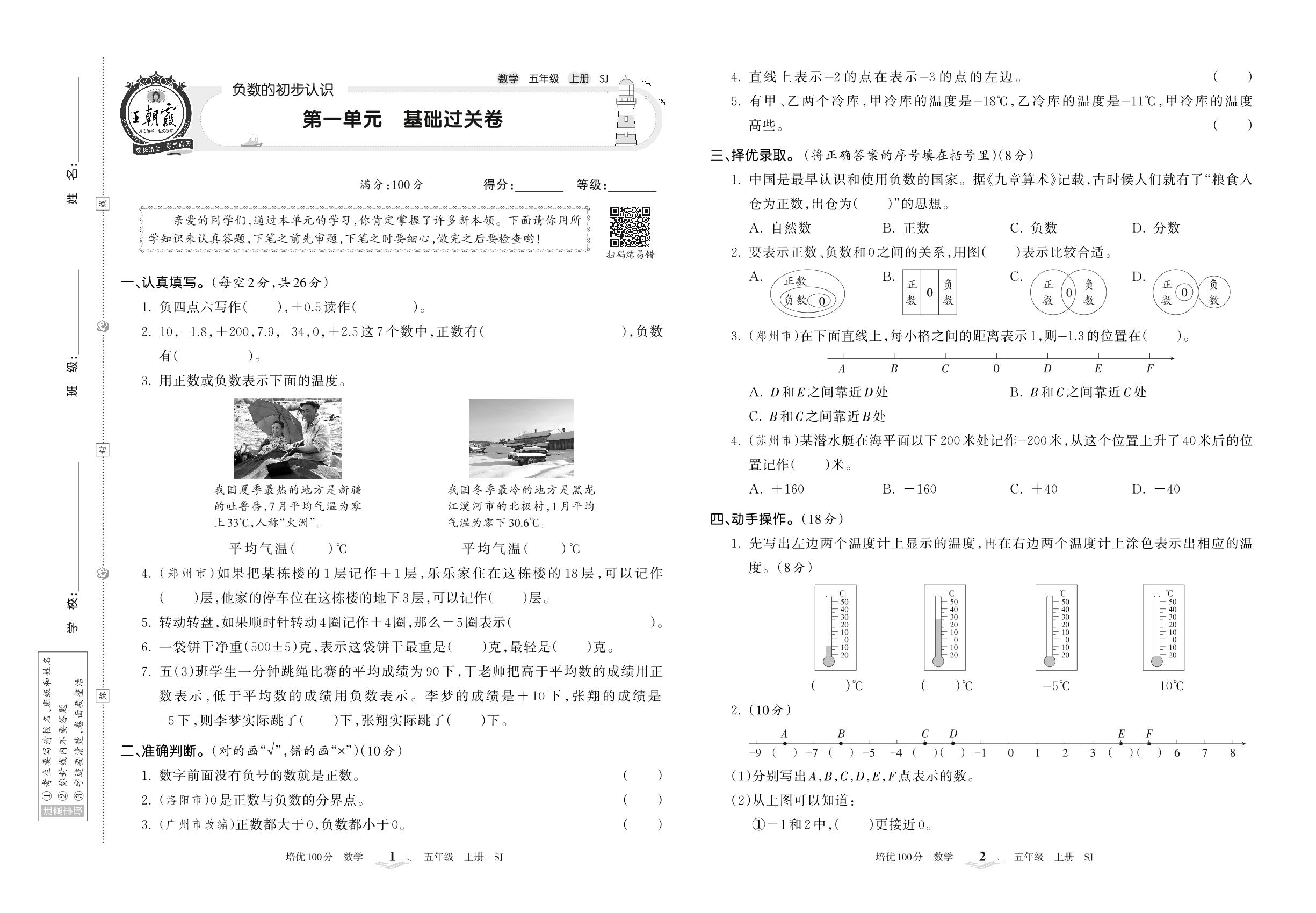 2022上册五年级数学苏教版 第一单元 基础过关卷