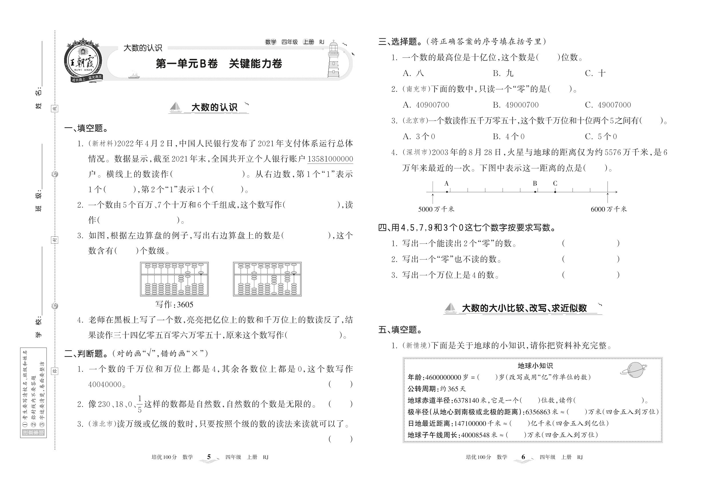 2022上册四年级数学人教版 第一单元B卷 关键能力卷