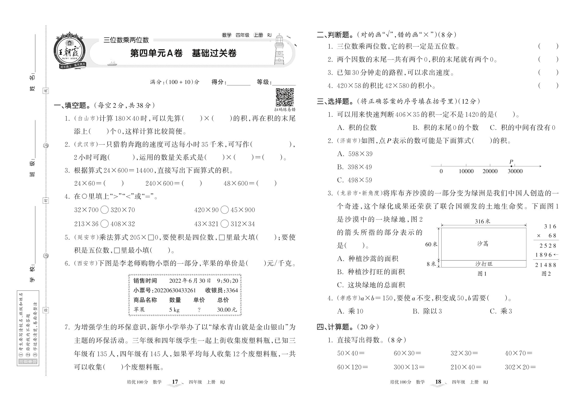 2022上册四年级数学人教版 第四单元A卷 基础过关卷