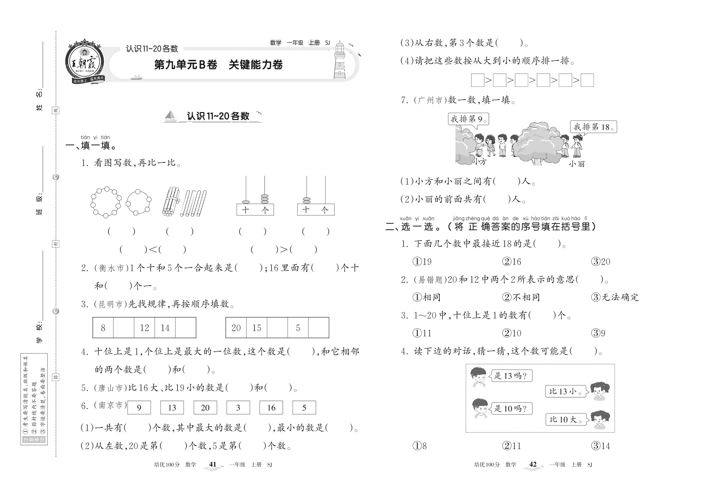2022上册一年级数学苏教版 第九单元B卷 关键能力卷