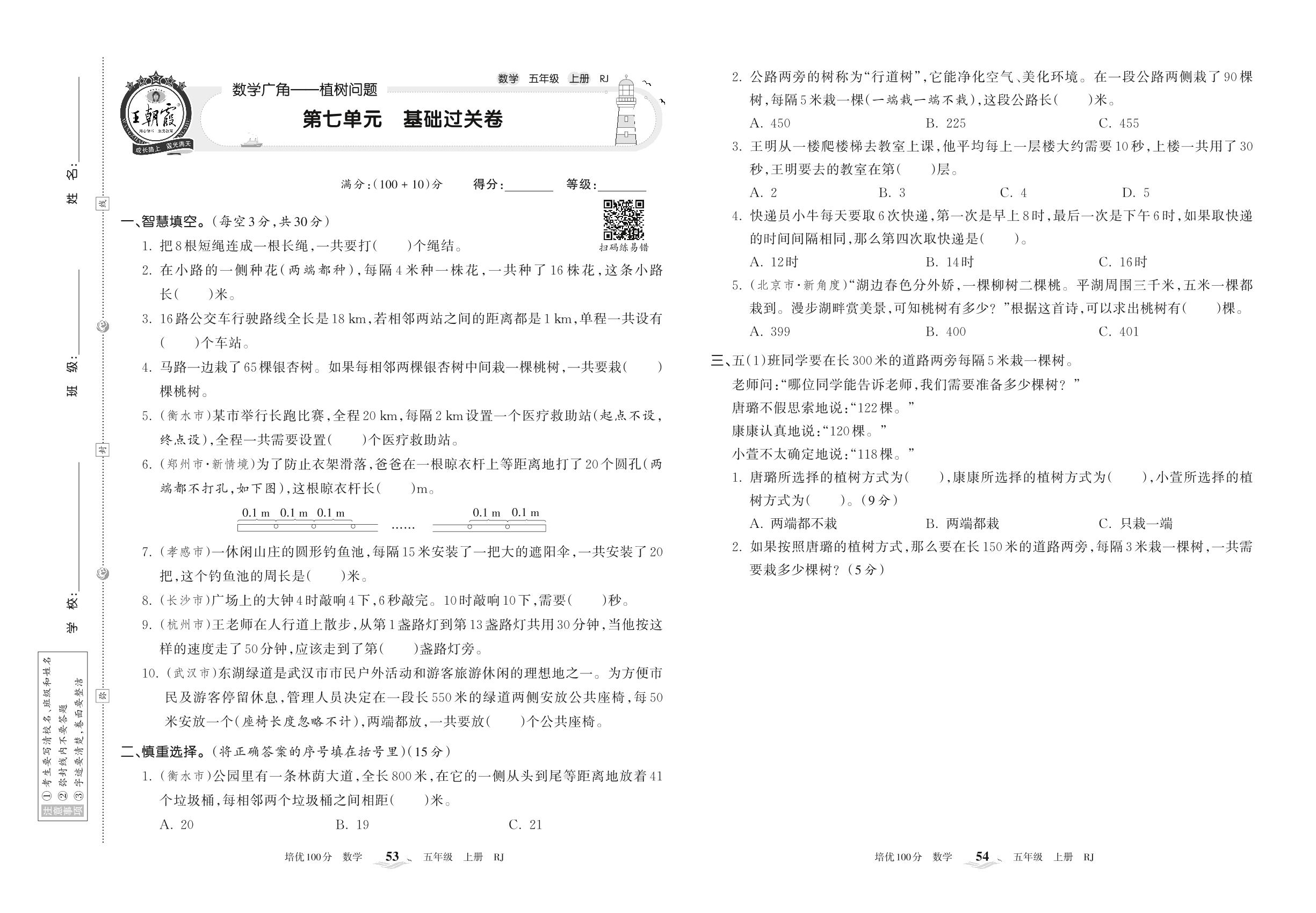 2022上册五年级数学人教版 第七单元 基础过关卷