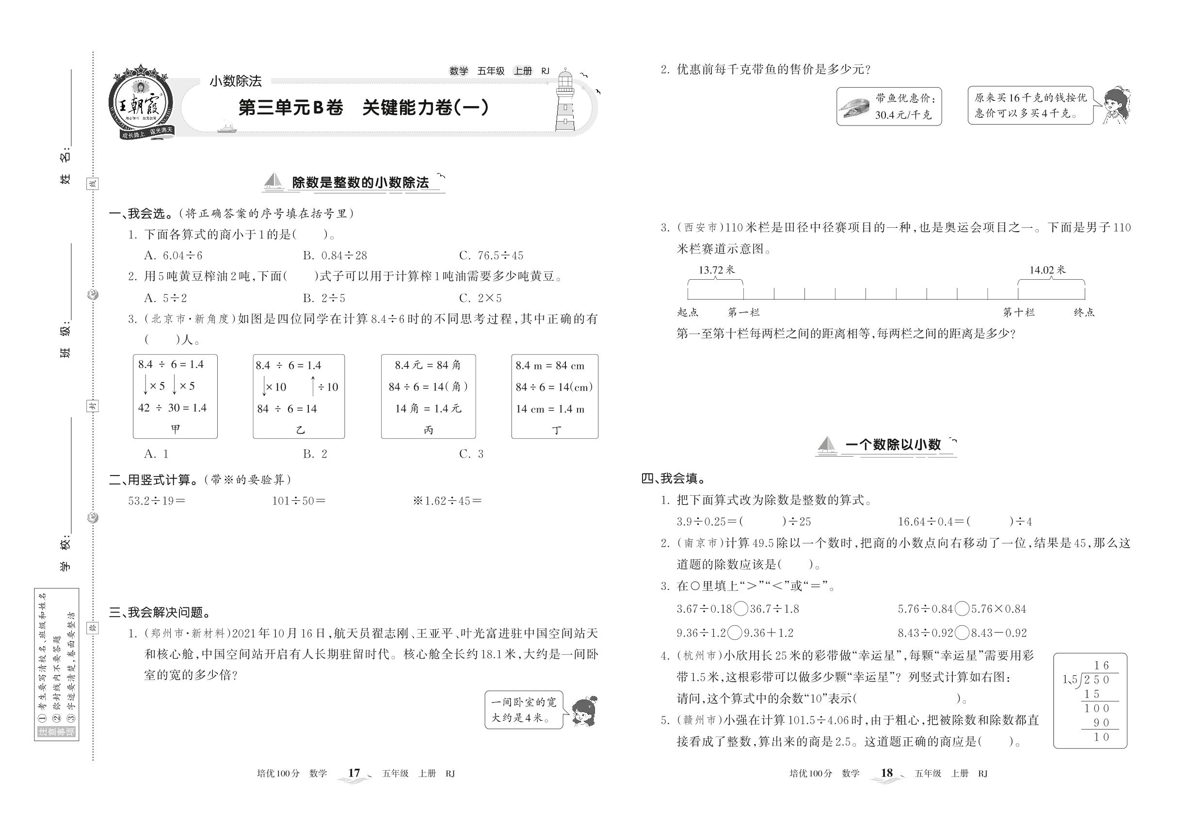 2022上册五年级数学人教版 第三单元B卷 关键能力卷(一)