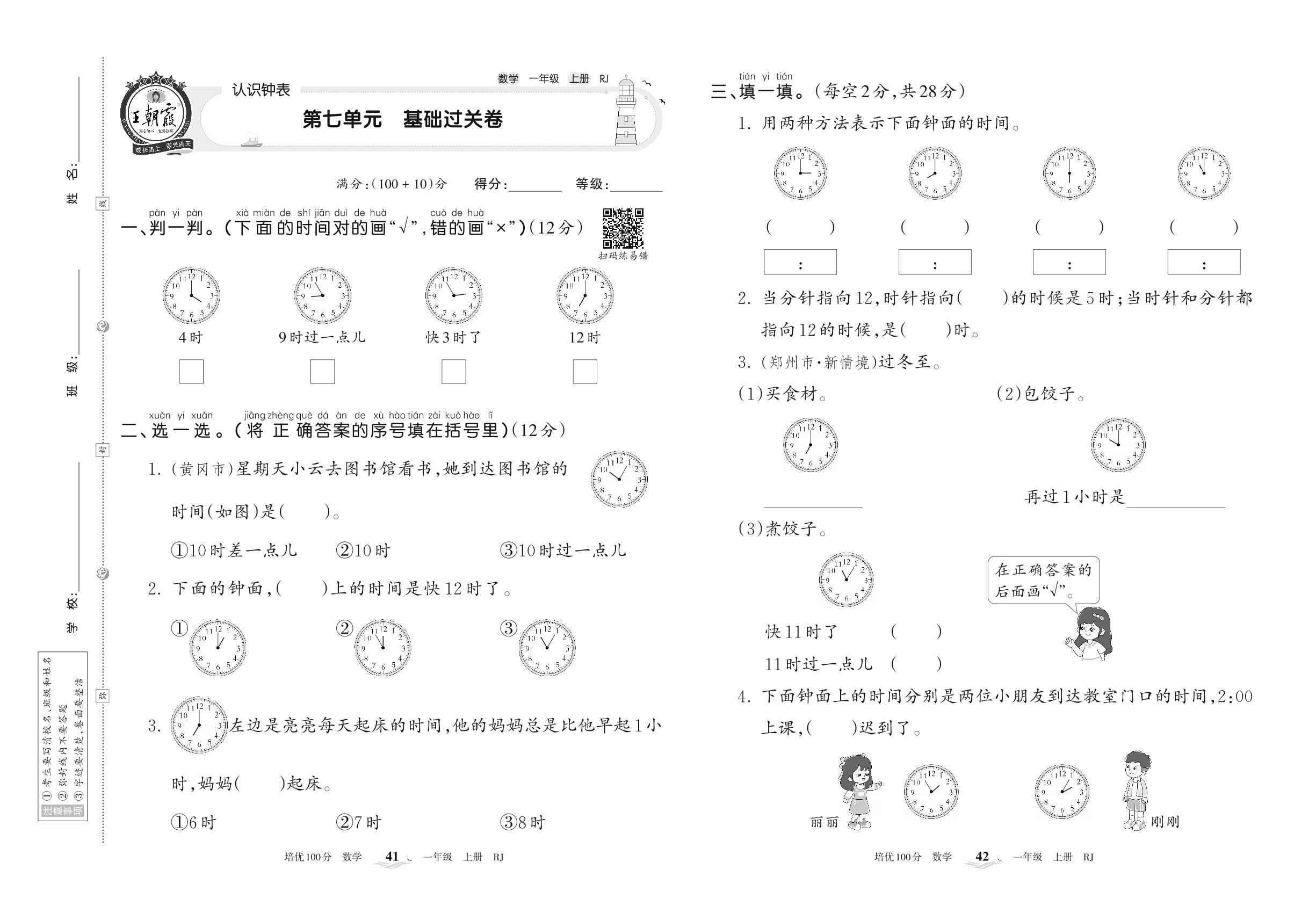 2022上册一年级数学人教版 第七单元 基础过关卷
