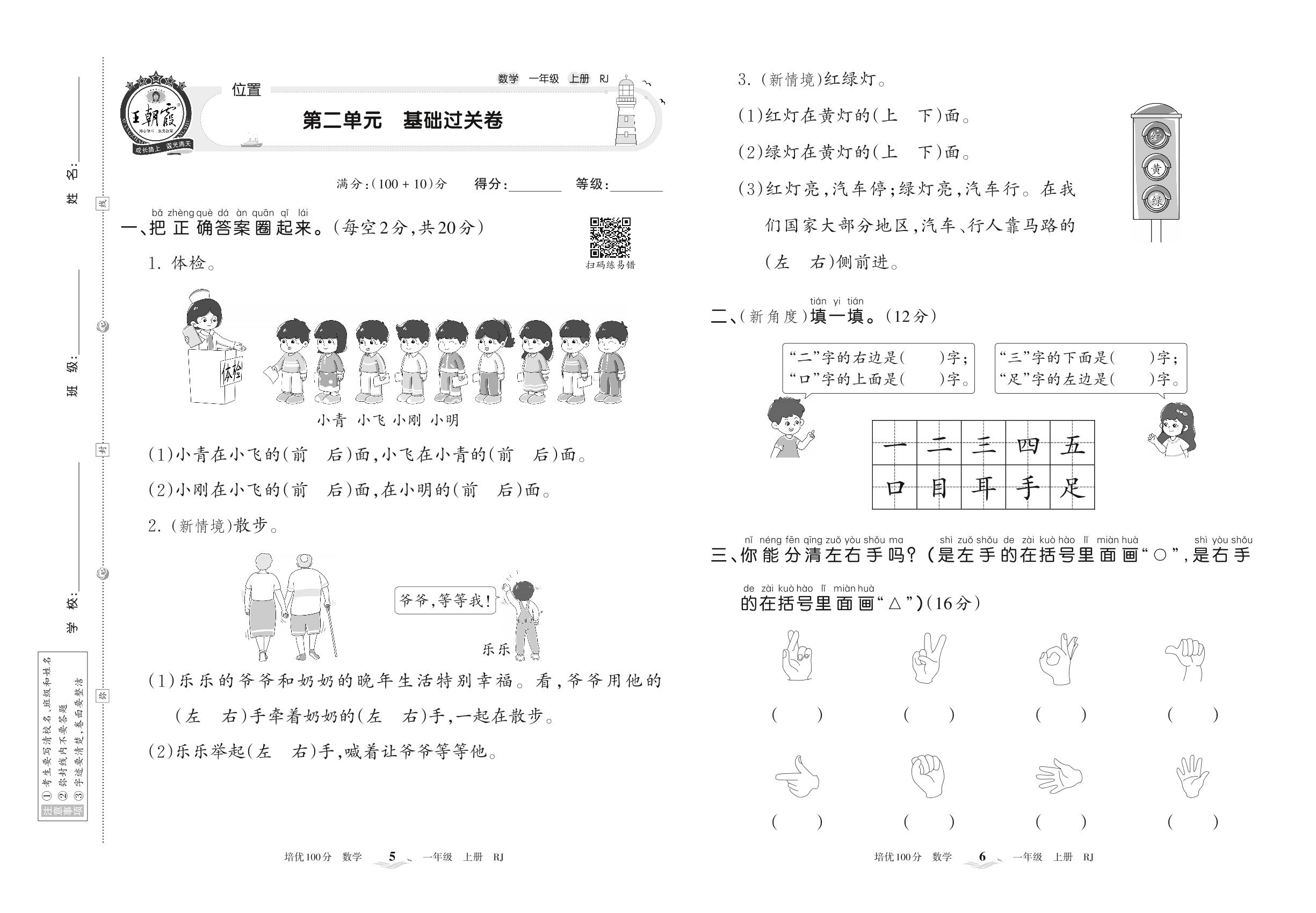 2022上册一年级数学人教版 第二单元 基础过关卷