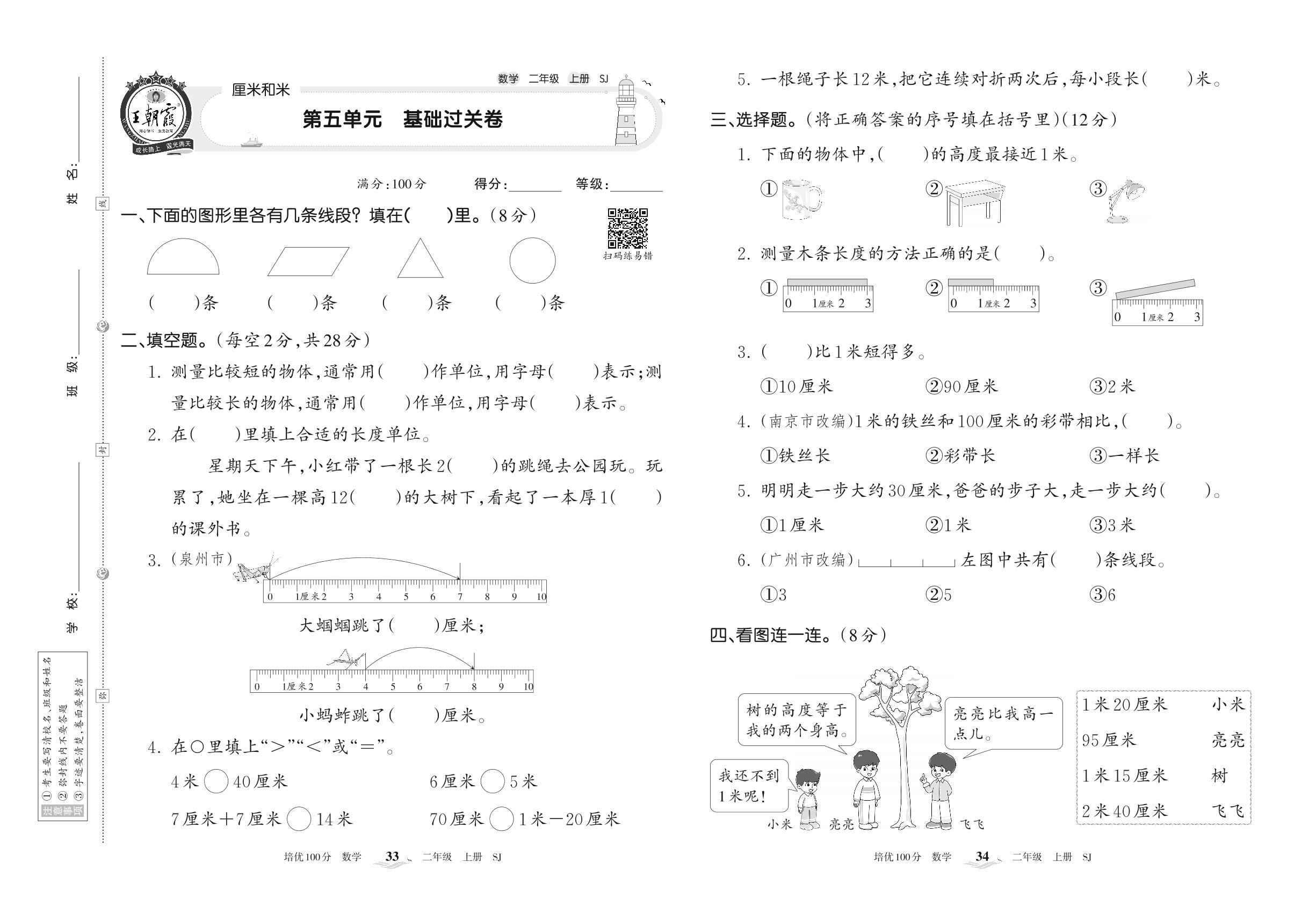 2022上册二年级数学苏教版 第五单元 基础过关卷