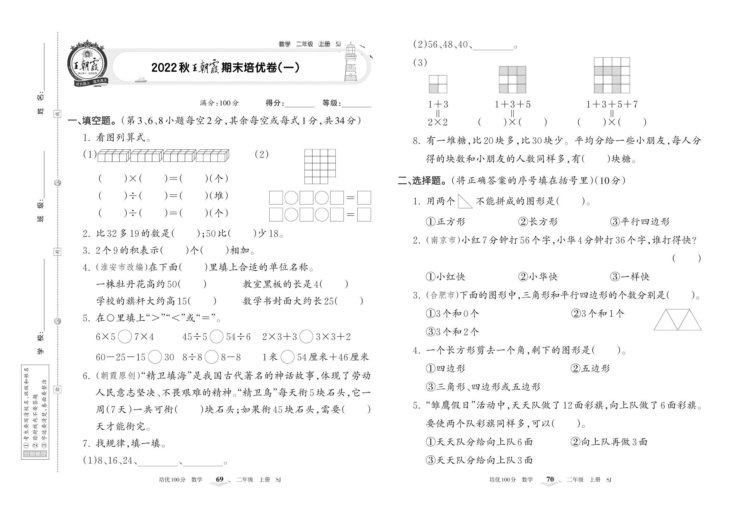 2022上册二年级数学苏教版 2022秋王朝霞期末培优卷(一)