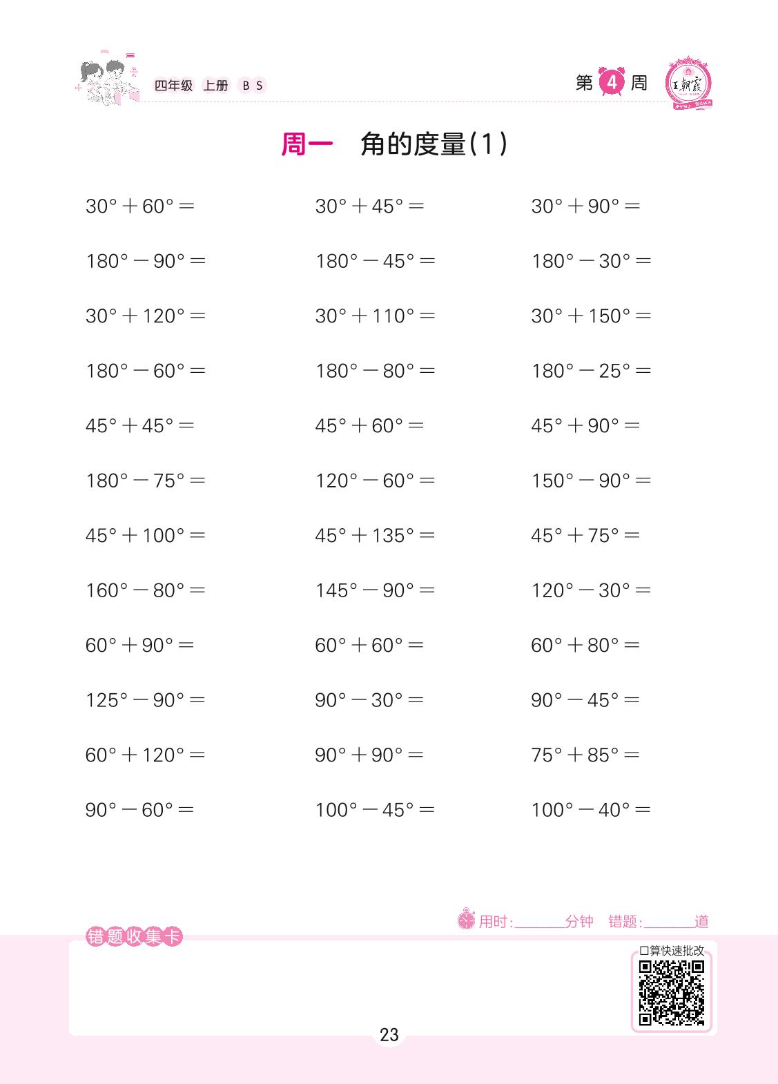 2022上册四年级数学北师版 第4周 周一