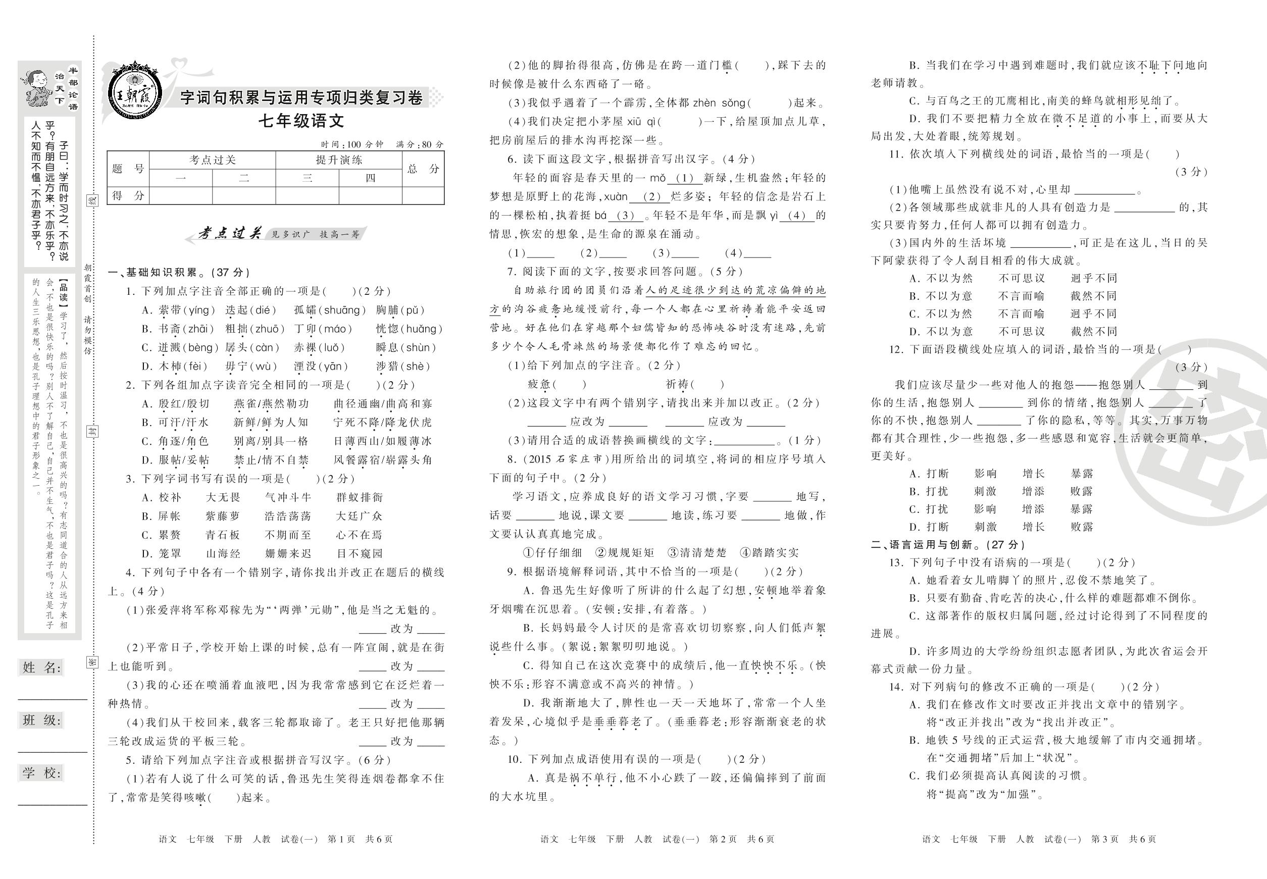 七年级语文人教版下册专项卷